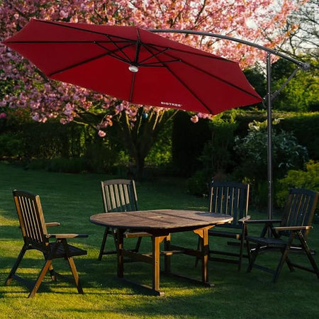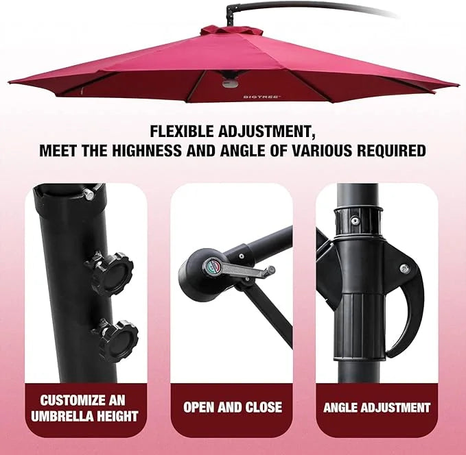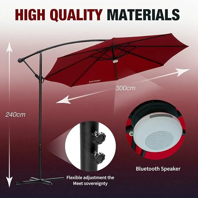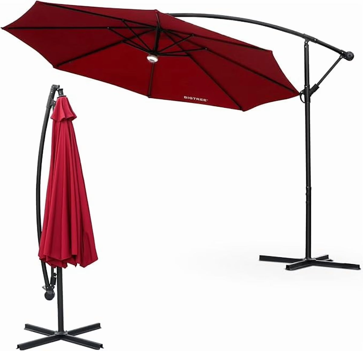 10 FT Patio Offset Hanging Umbrella Solar LED Light Adjustable Cantilever Outdoor Market Umbrellas for Backyard, Poolside, Lawn and Garden