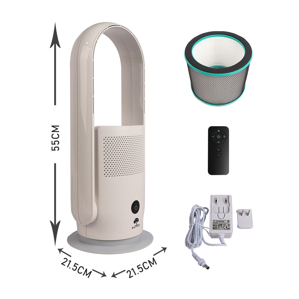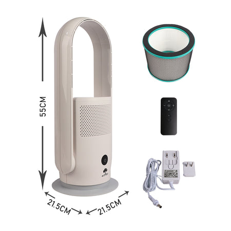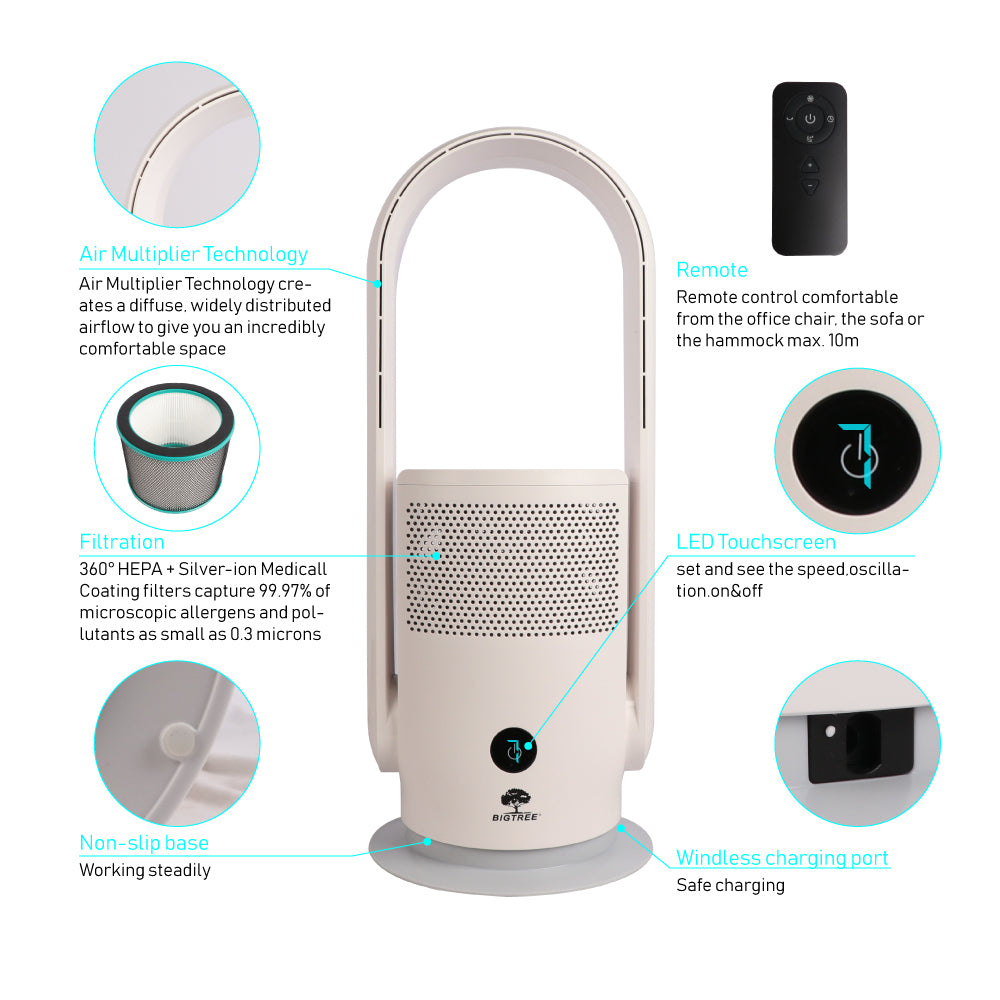 - Combines a bladeless fan and an air purifier in one sleek unit, saving space while delivering clean, cool air.