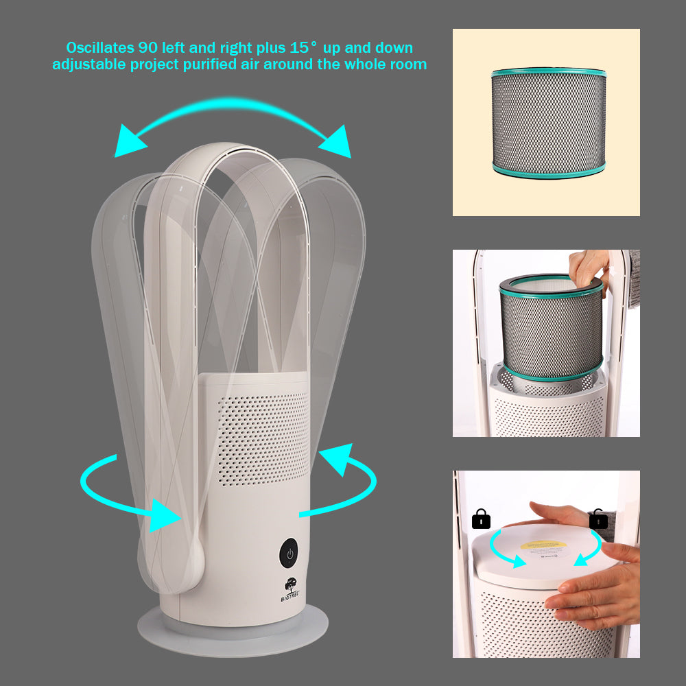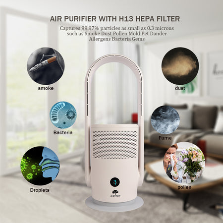 2-in-1 Bladeless Fan & H13 HEPA Air Purifier, Oscillating Air Cleaner for Home