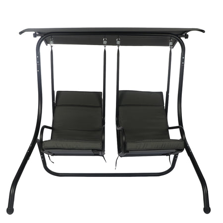 2-Person Patio Swing with Canopy, Outdoor Cushioned Hanging Swing