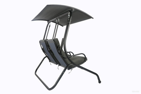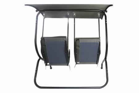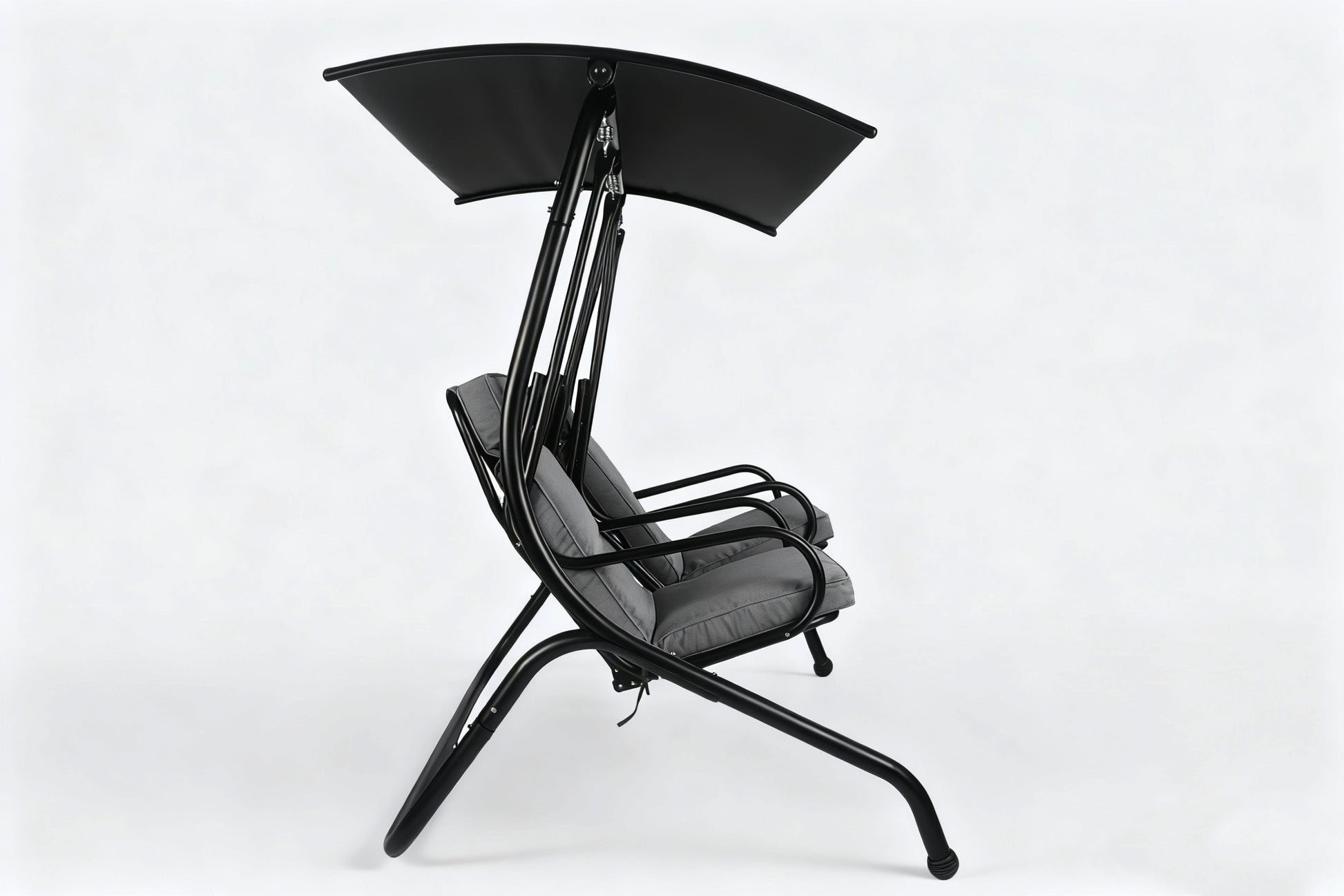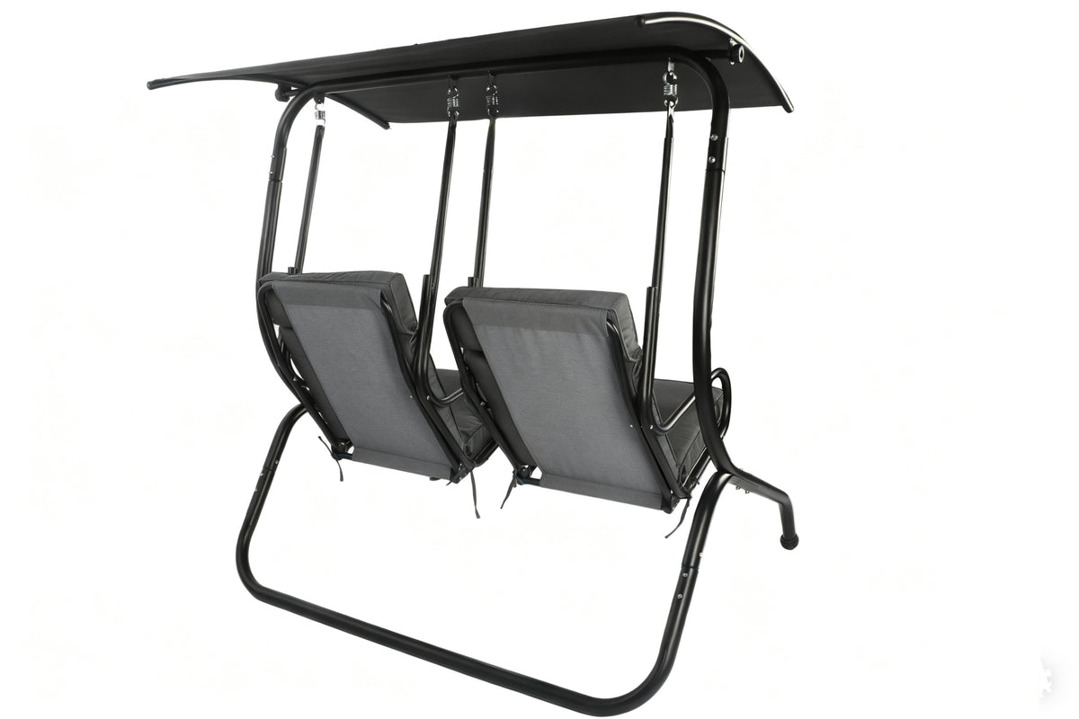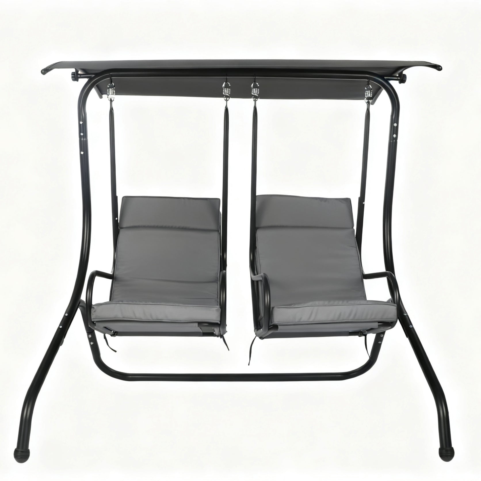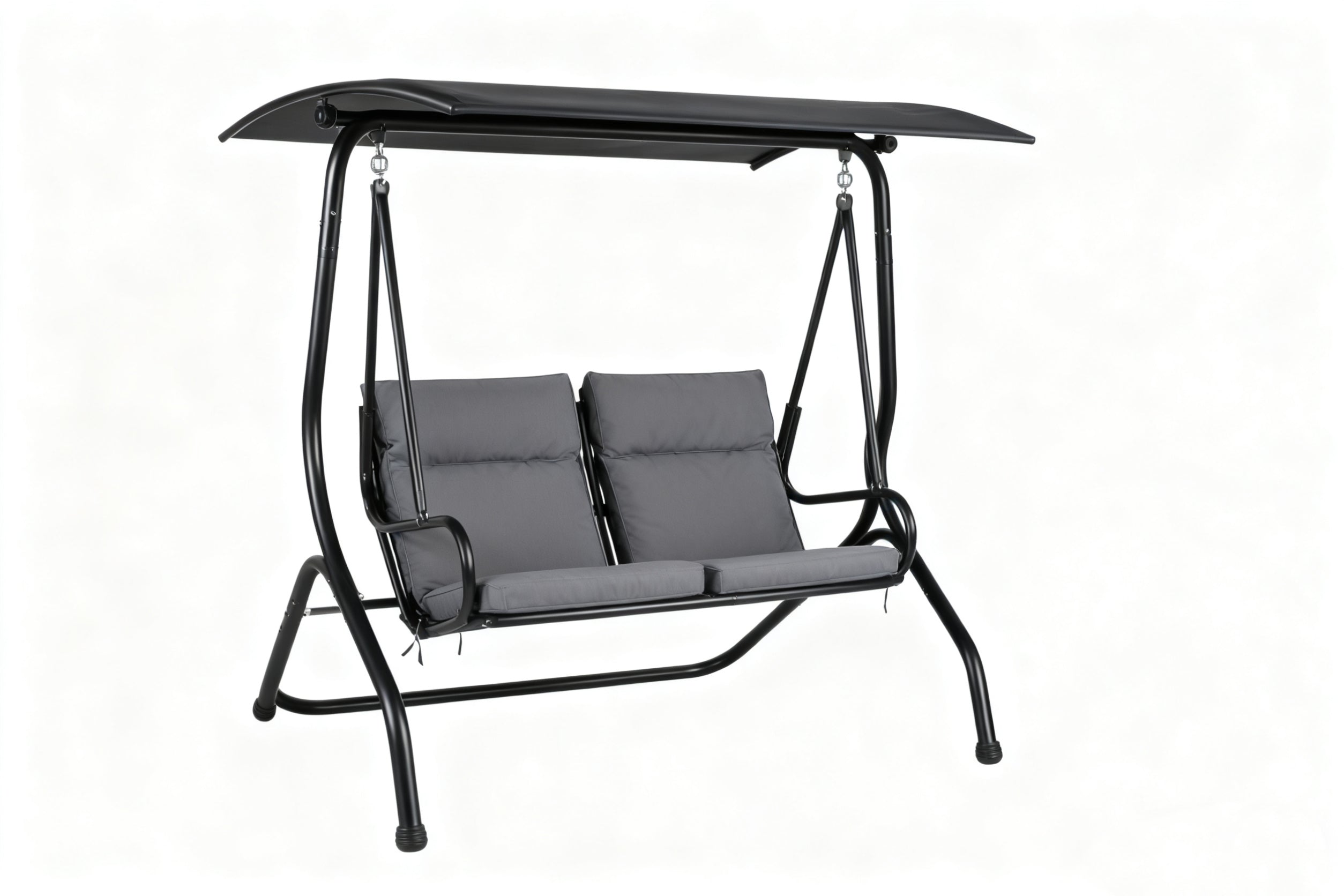 2-Seat Outdoor Patio Swing with Canopy, Black Metal Porch Swing Chair with Cushions, Weather-Resistant for Garden, Backyard, Deck
