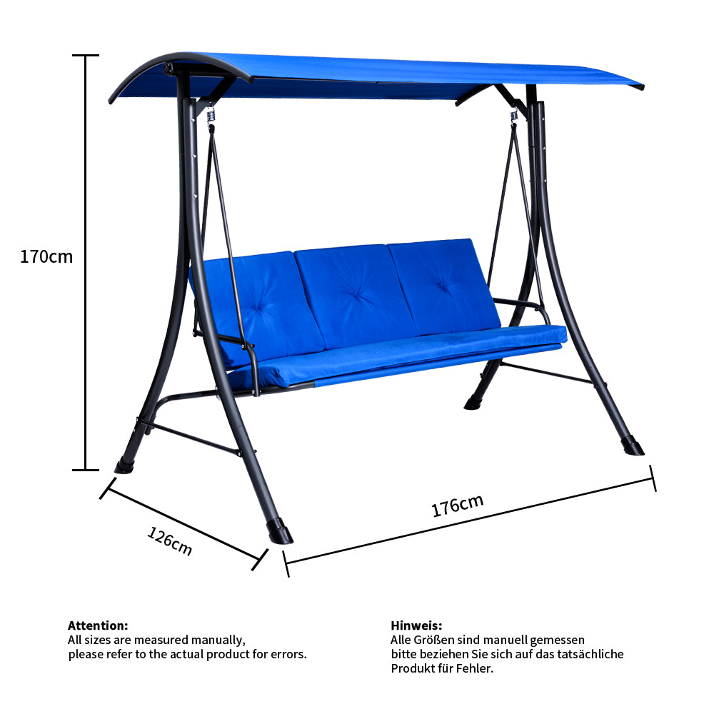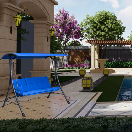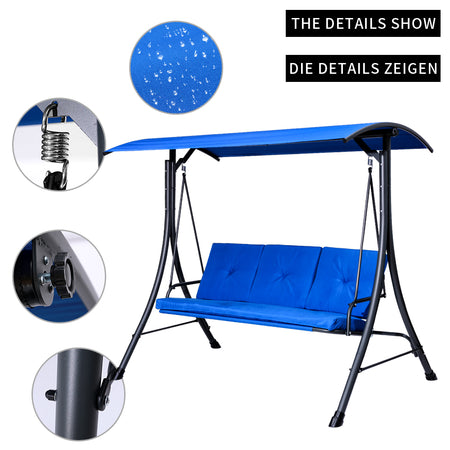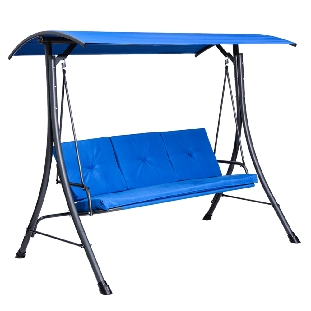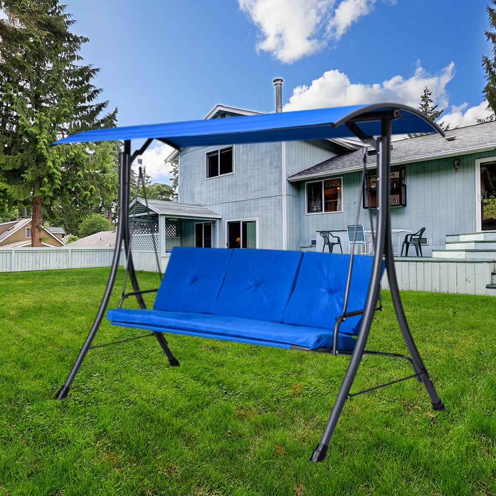 3-Person Patio Swing with Canopy, Outdoor Cushioned Swing Chair