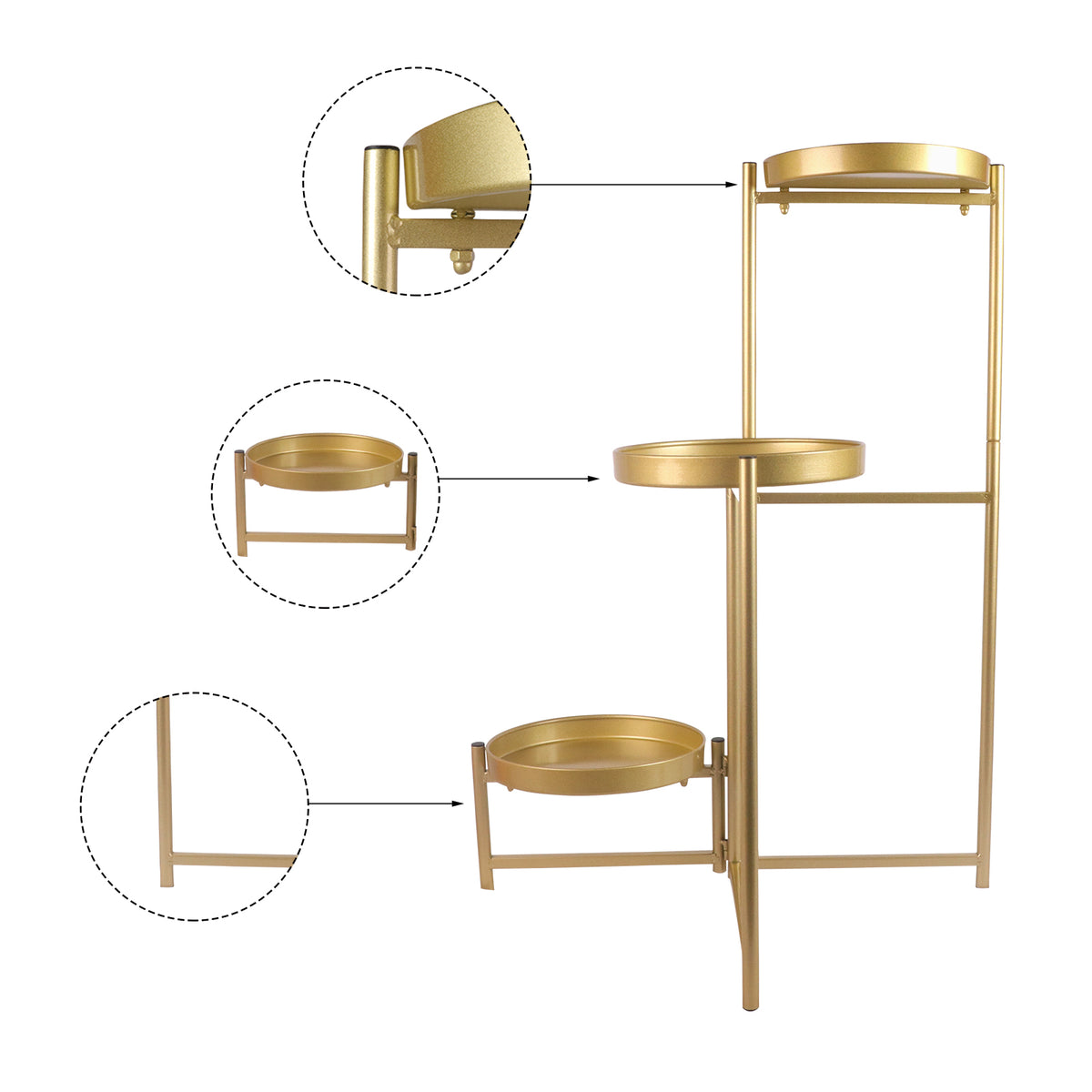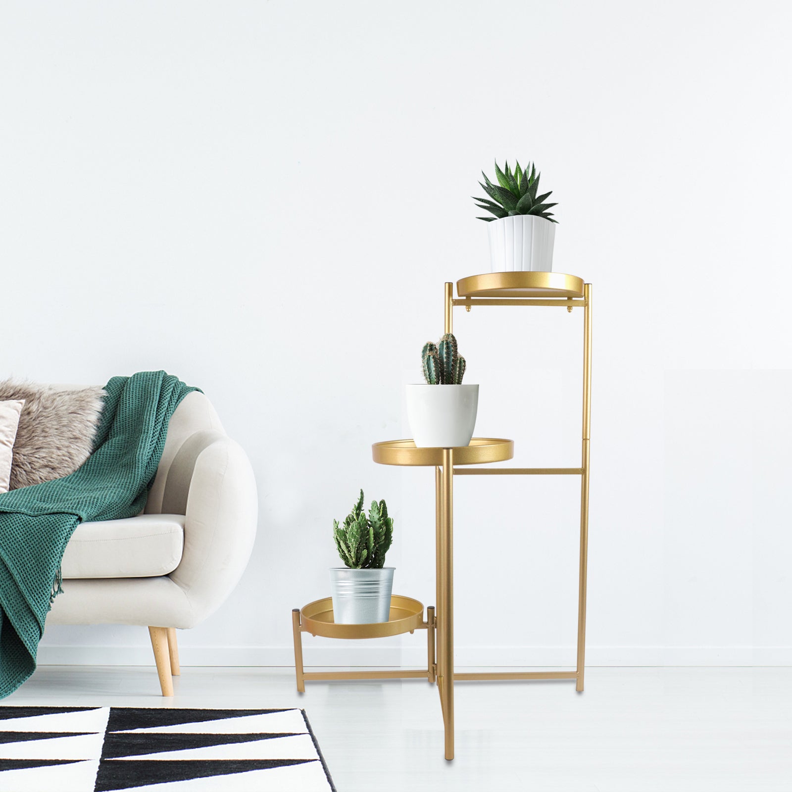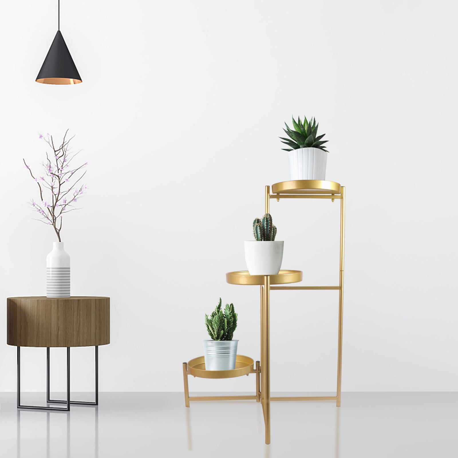 3-Tier Foldable Gold Metal Plant Stand, Modern 2-in-1 Plant Shelf