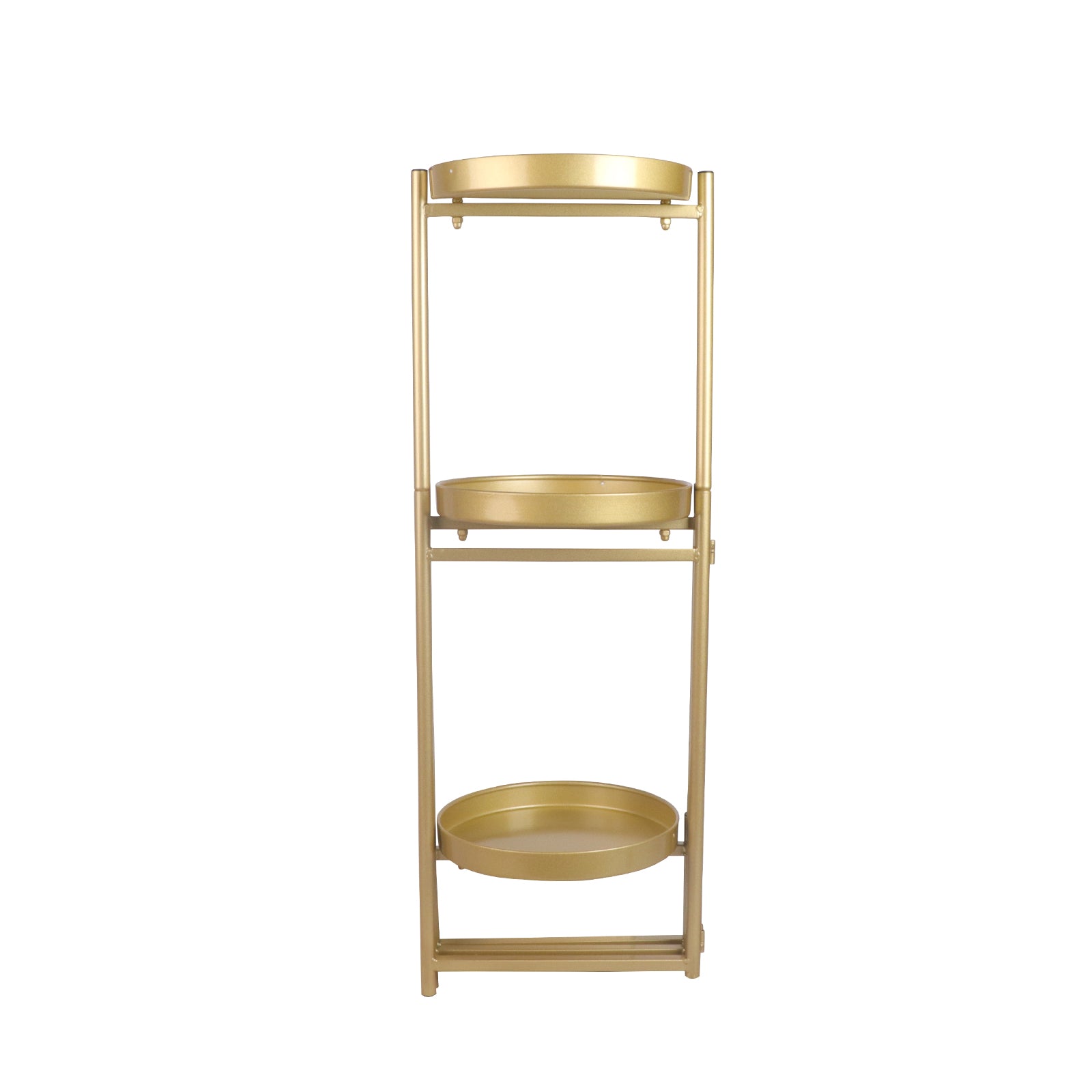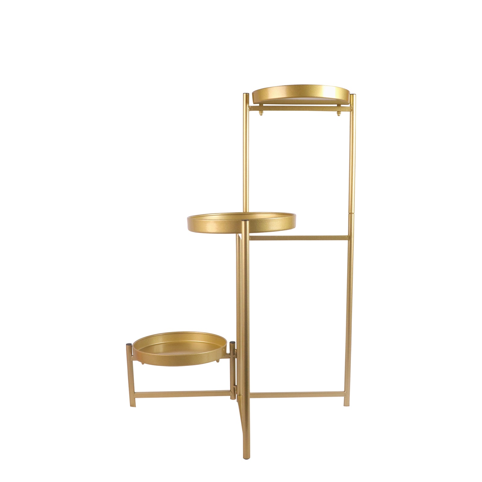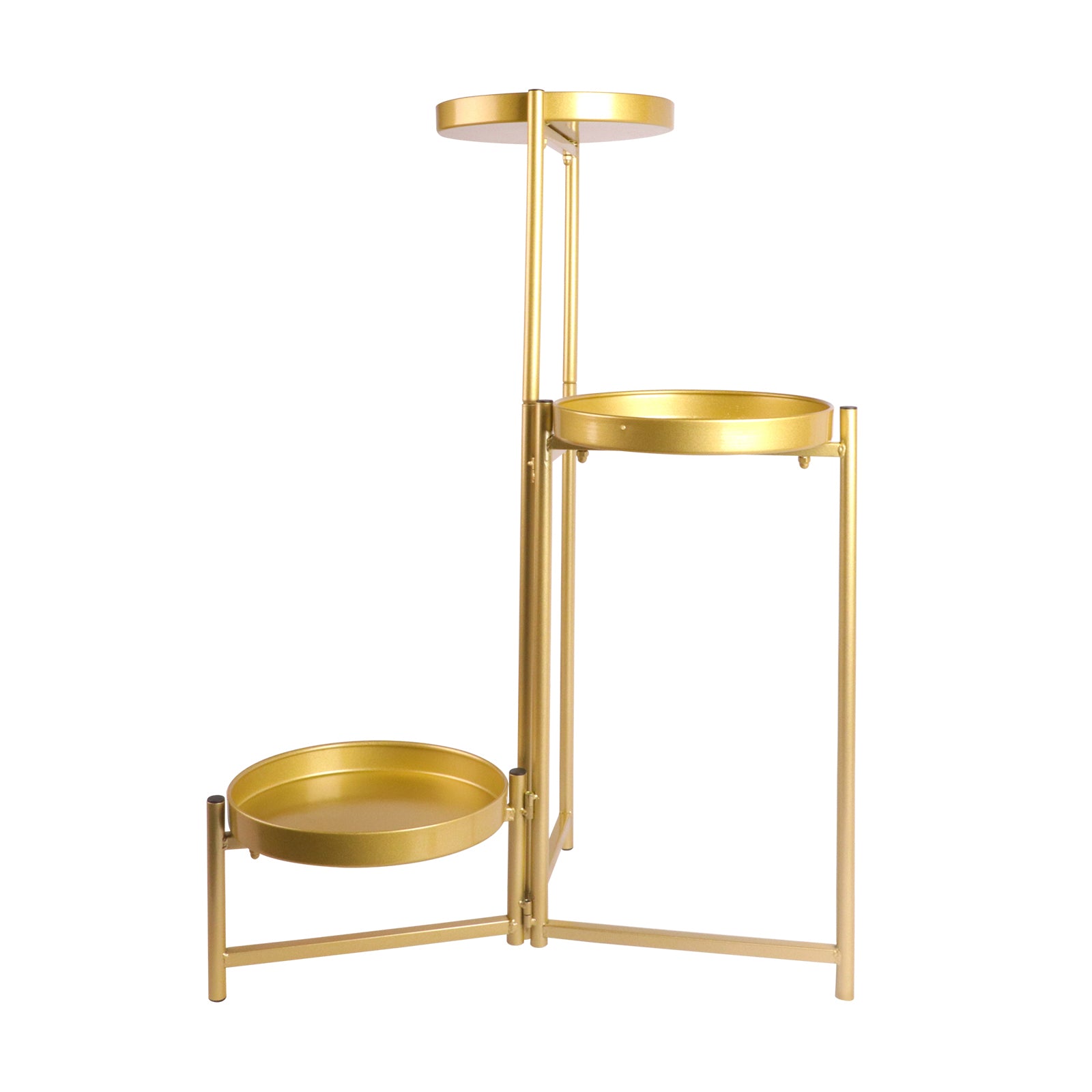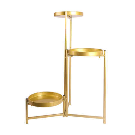 3-Tier Foldable Gold Metal Plant Stand, Modern 2-in-1 Plant Shelf