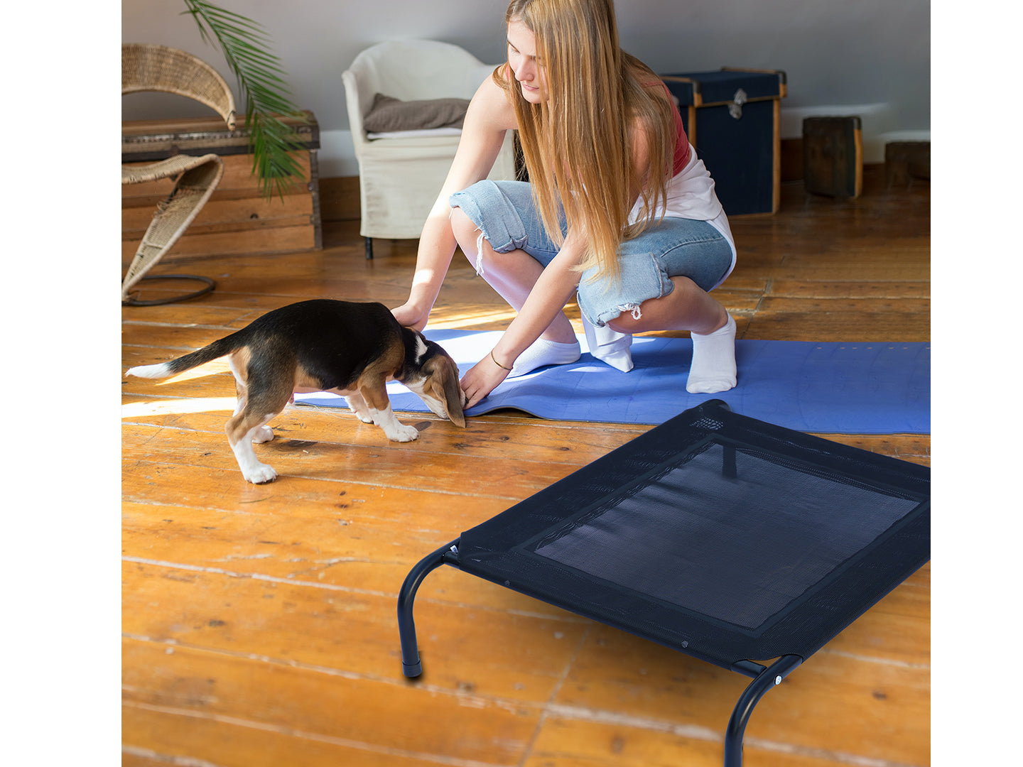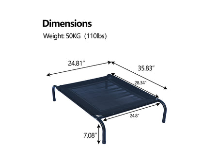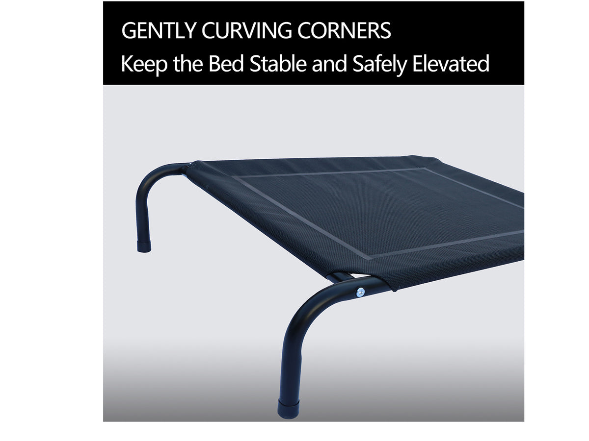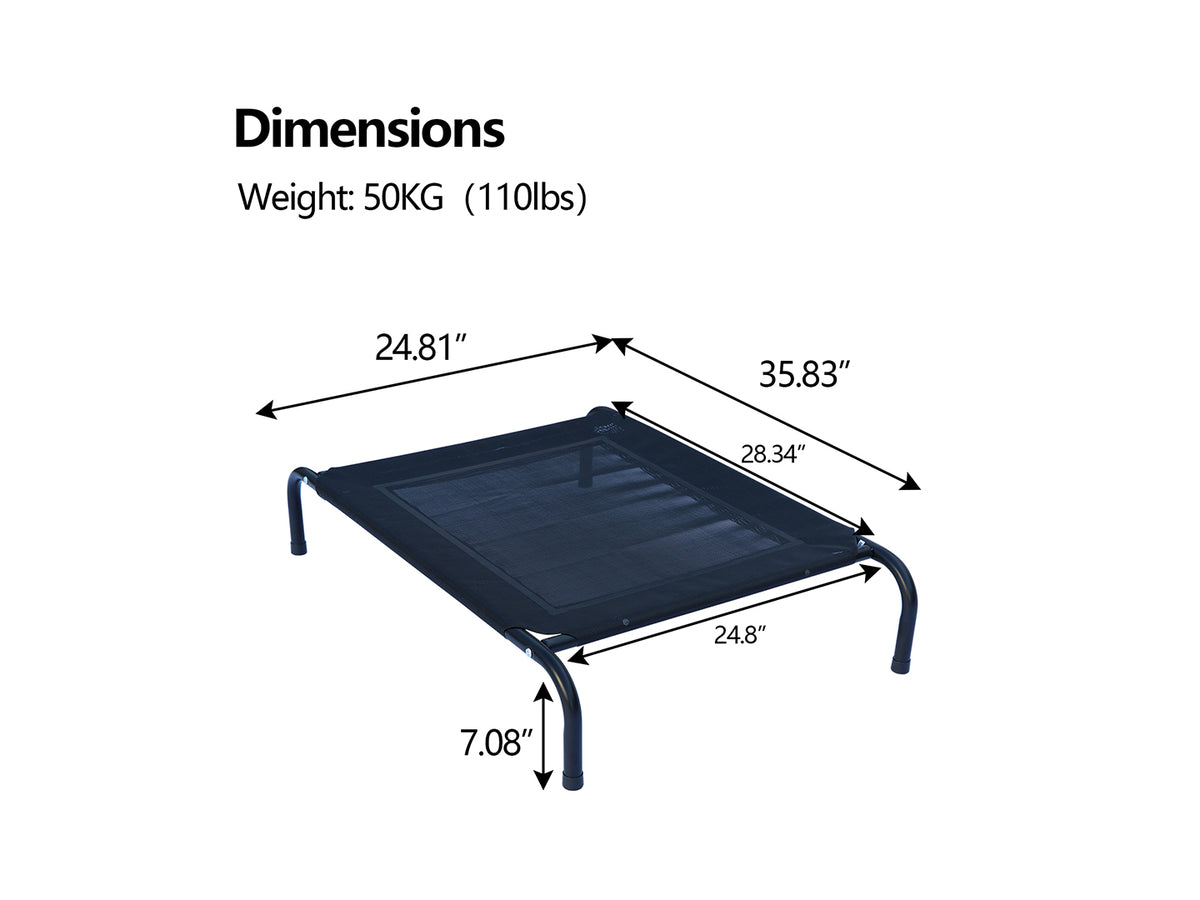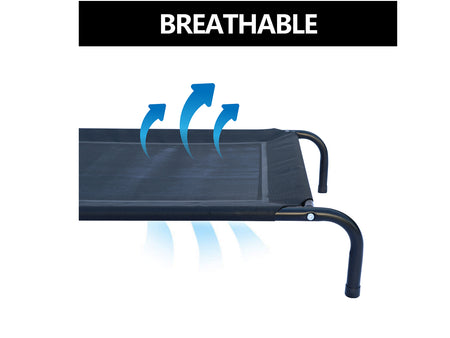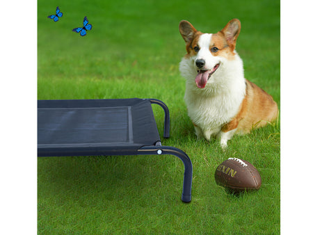 - The raised mesh cot lifts your pet 7 inches off the ground, allowing air to circulate freely to keep them cool on hot days.