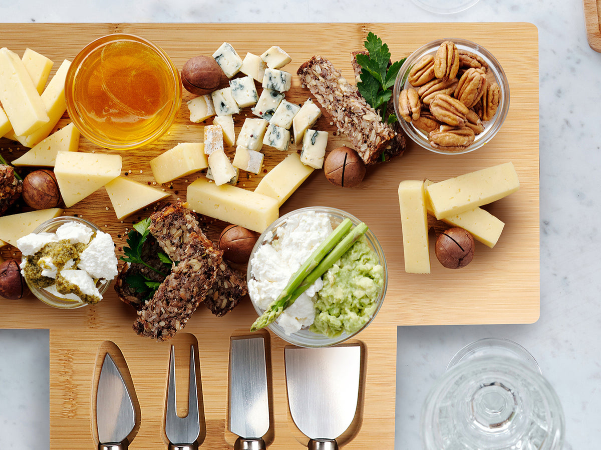 Bamboo Cheese Board with Cutlery Set, Charcuterie Serving Platter