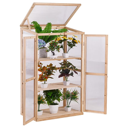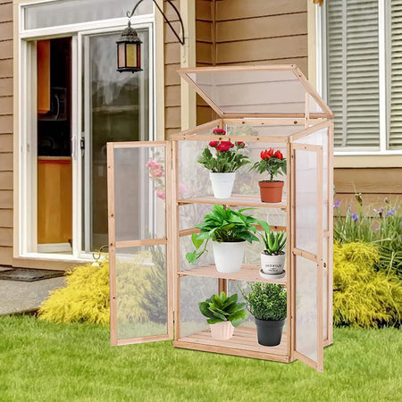BIGTREE 3 Tiers Wood Cold Frame Greenhouse Nursery Vented Garden 27X19X47