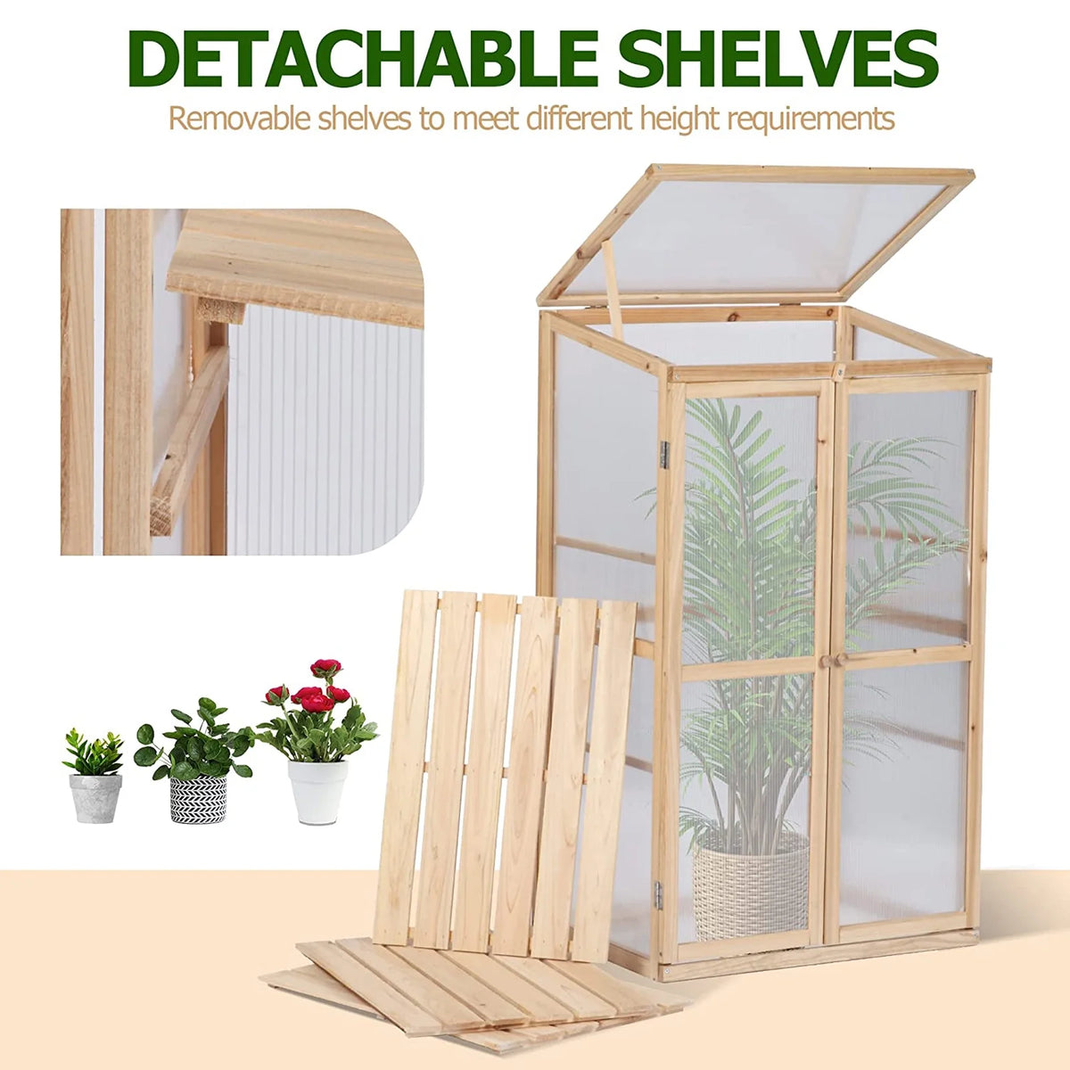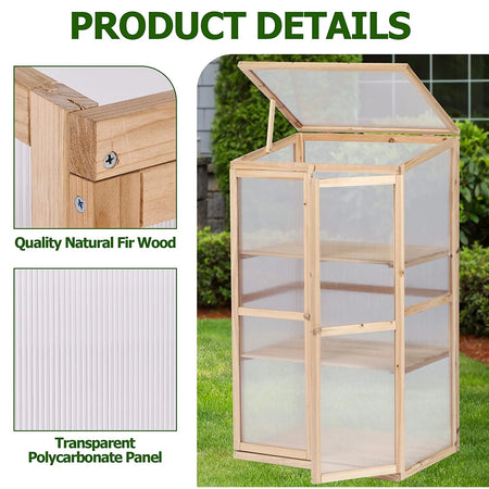 - 【STABLE STRUCTURE】Solid fir wood structured frame extended durability, transparent PC panel to let in the maximum amount of the light. It's strong enough to move around according to the weather. (Assembled Dimension: 27"x19"x47")<br>