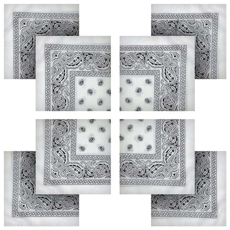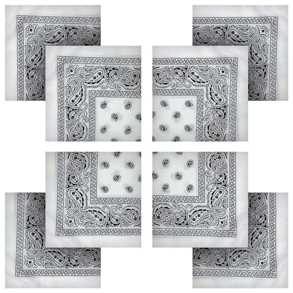 BIGTREE 8pk White Unisex Cotton Bandanas Multi-Purpose Headband