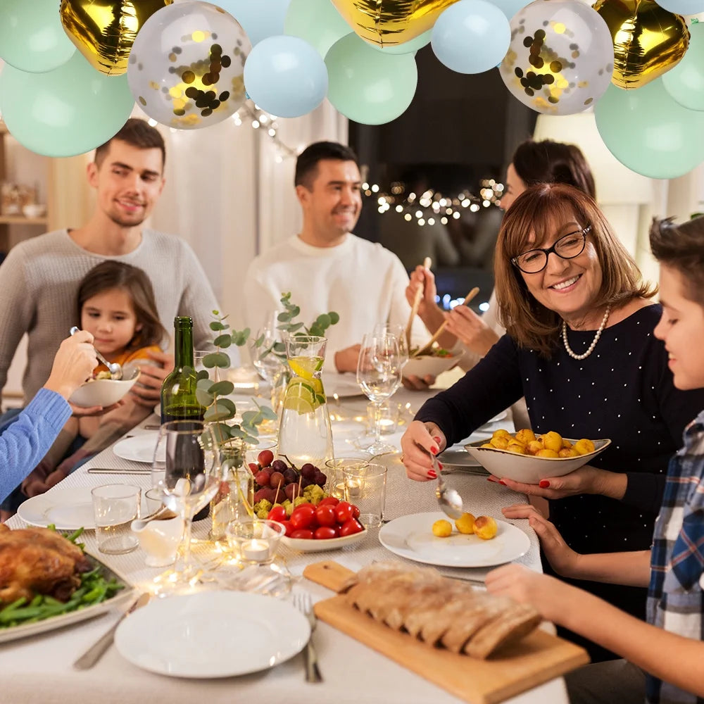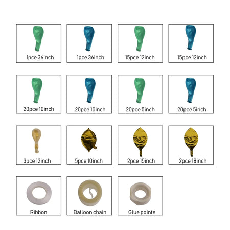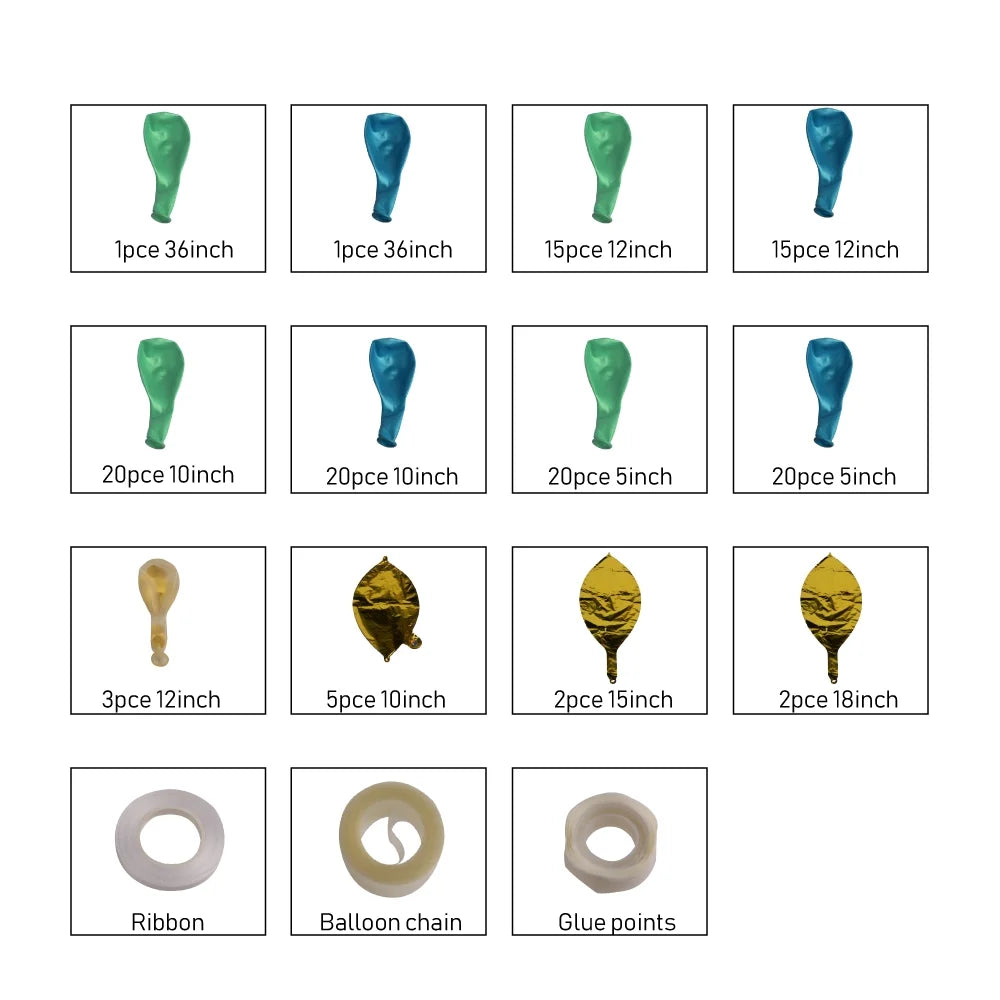 BIGTREE Balloon Garland Arch 126 Assorted Party Kit Green Gold Baby Blue Clear Confetti