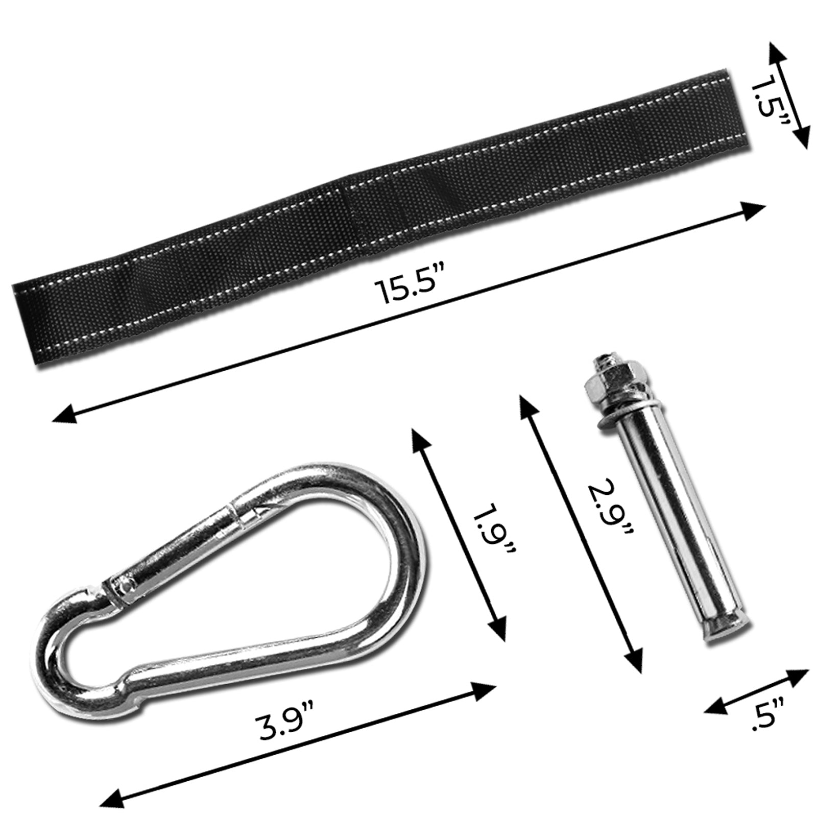 - 🏃SAFETY :Safely supports up to 700 pounds. Hang your body or equipment with confidence. This permanent painted steel anchor measures 4.72 inches in diameter. Supports all brands Suspension Strap Body Weight Trainer models, Resistance Bands, and Crossfit Training Rings. Best anchoring solution for all suspension straps and resistance trainers, Crossfit Olympic Rings, Battle Ropes, Yoga Swings, & Boxing Equipment. Item weight: 2.2 lb.<p></p>