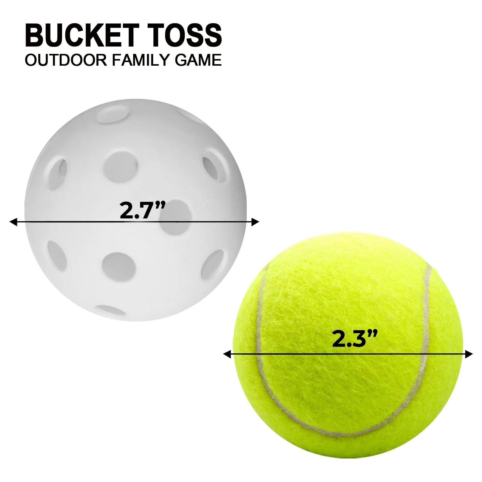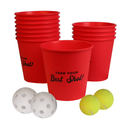 - <p>How to Play</p><p>Divide Everyone Into Teams</p><p>Depending on the size and demographics of your group, you have a few different options for teams:</p><p><br></p><p>Every man for himself in an elimination-style game. Each person gets their own bucket and if a ball lands inside their bucket they are eliminated.</p><p>Boys vs. Girls – A fun way to settle any differences is letting a game of bucket ball decide who gets their way!</p><p>Parents vs. kids – Finally a game where the kids can beat the parents!</p><p>Elected teams with team captains – Two team captains decide who is on their teams by taking turns choosing team mates.</p><p> </p><p><br></p><p>Bucket Toss Game Types</p><p><br></p><p>Traditional Bucket Toss for maximum interaction between players:</p><p><br></p><p>Each side creates a triangle of six buckets. The bucket zones are typically 30ft apart.</p><p>Each team takes shots at opposing teams buckets. If a ball lands inside, it is removed from game play.</p><p>The team to first eliminate the other teams bucket wins!</p><p> </p><p><br></p><p>Fast Pace Bucket Toss</p><p>For a more exciting game of bucket toss, try the following variation for faster paced action:</p><p><br></p><p>Place a single bucket typically 30ft apart. Each team stand behind their bucket before shooting.</p><p>Each team starts to throw the balls one by one into the bucket from behind the bucket line.</p><p>The team to first get two successful bucket tosses wins.</p><p> </p><p><br></p><p>Product Contents</p><p><br></p><p>Twelve (12) Buckets</p><p>Two (2) Tennis Balls</p><p>Two (2) Waffle Balls</p><p>Travel Bag</p><p></p>