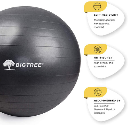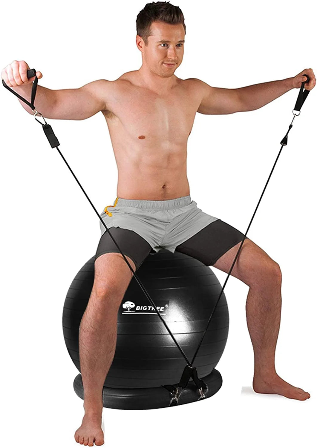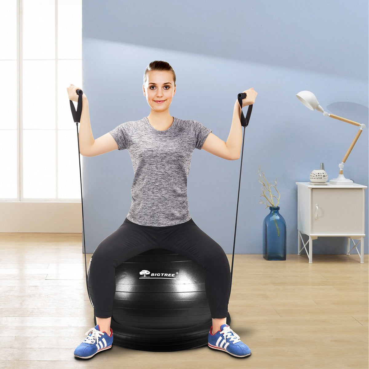 BIGTREE Exercise Ball Chair Yoga Balance Ball Chair Fitness Set with Ring Base Resistance Bands Pump Black 29.5″ (75 cm)