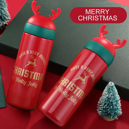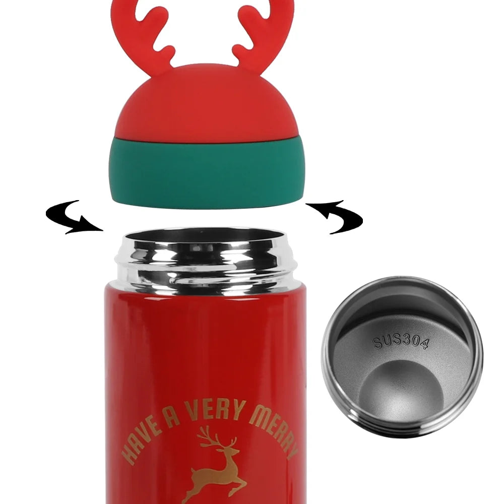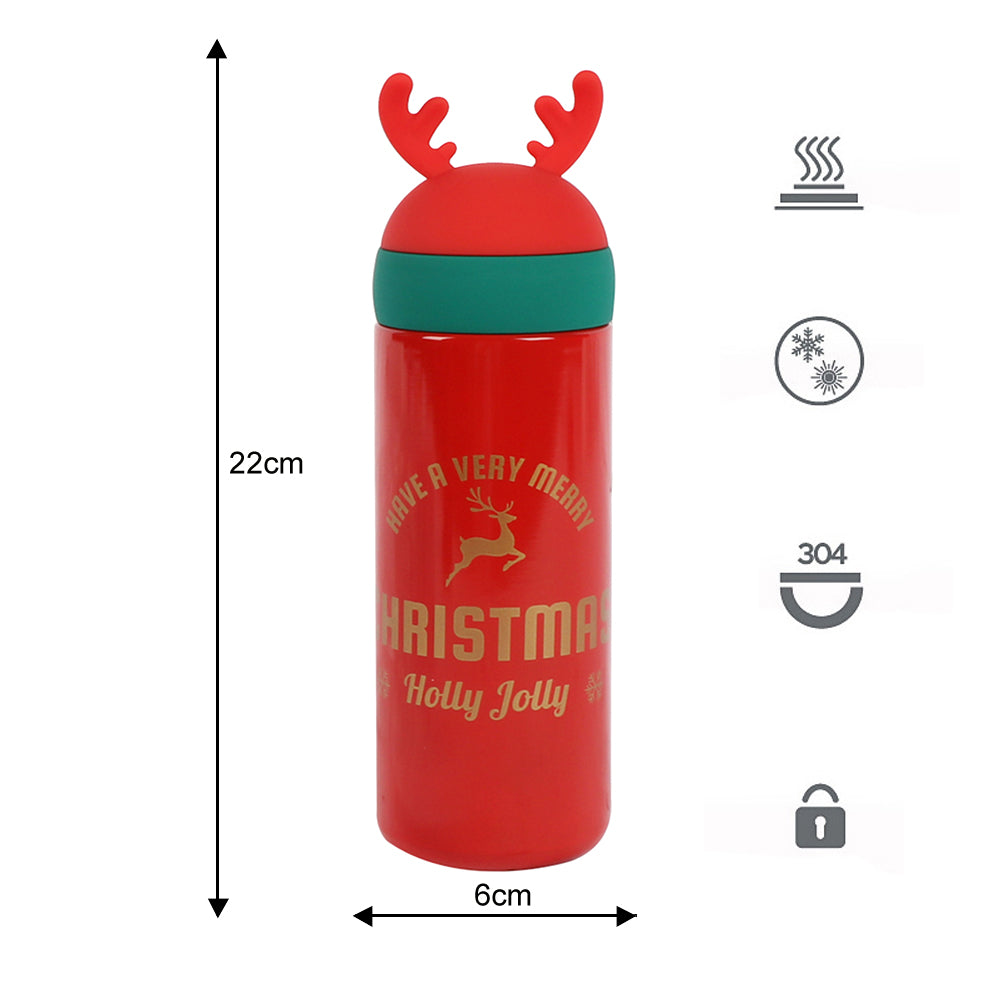 BIGTREE Holiday Christmas Red Insulated Stainless Steel Water Bottle Hot Cold Thermos for Adult