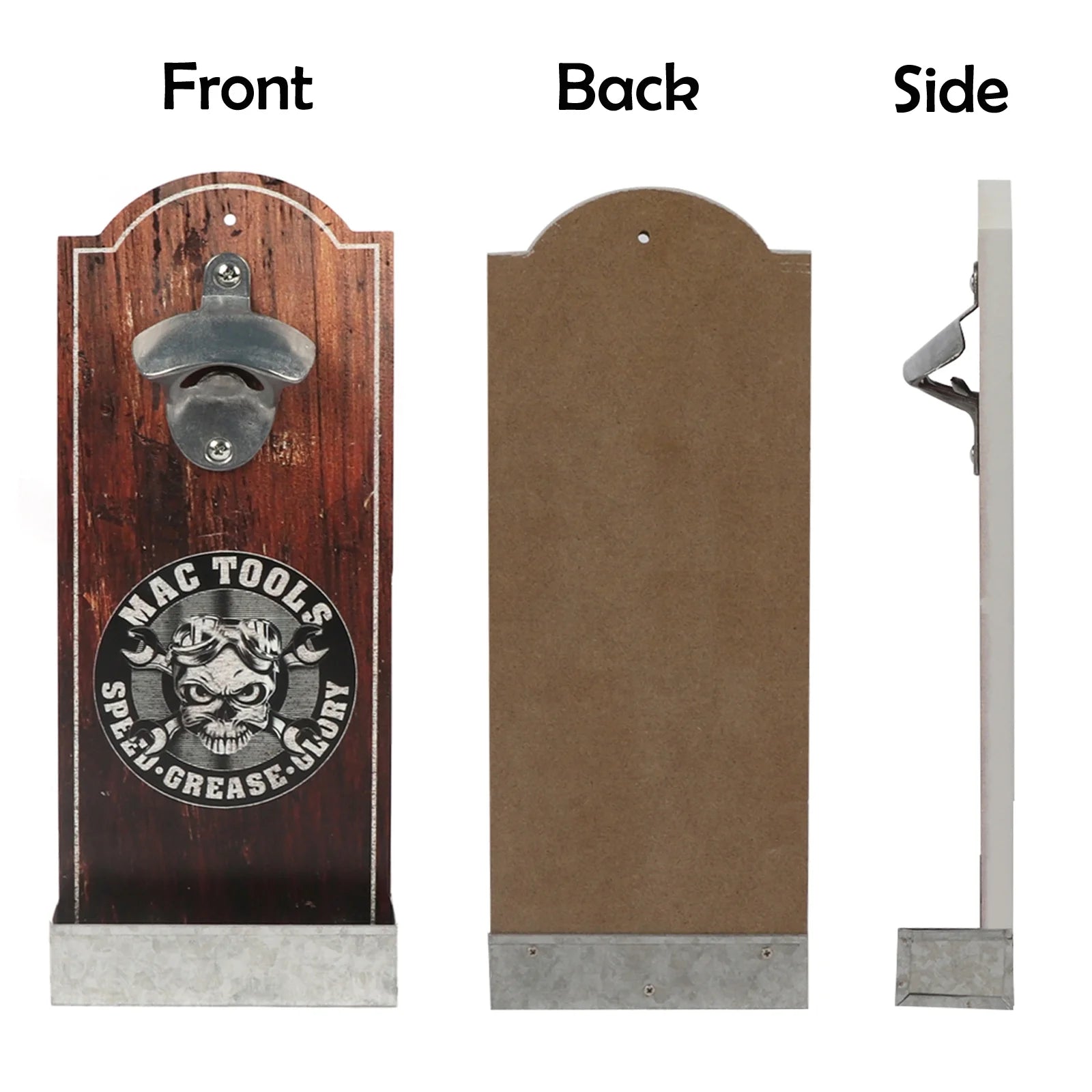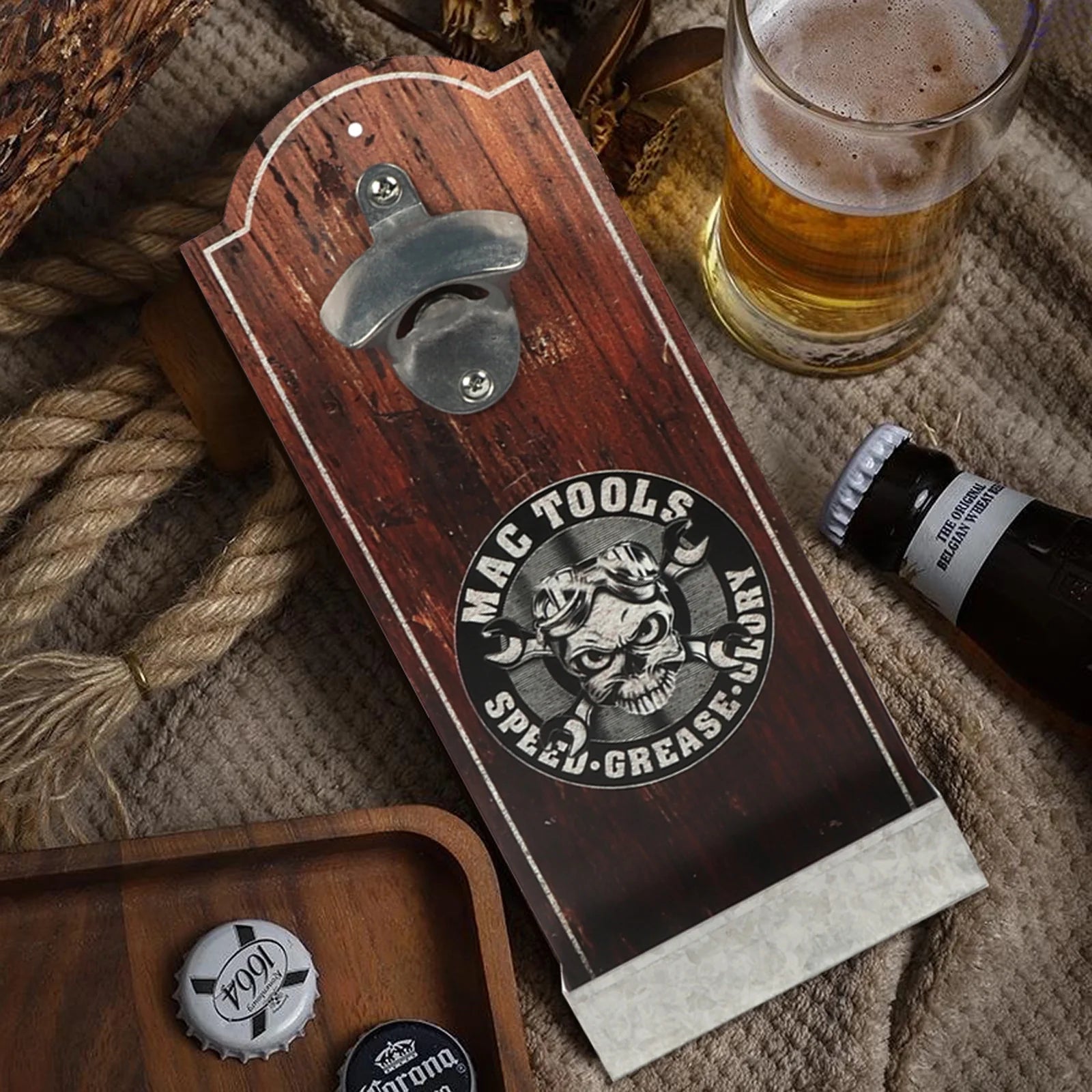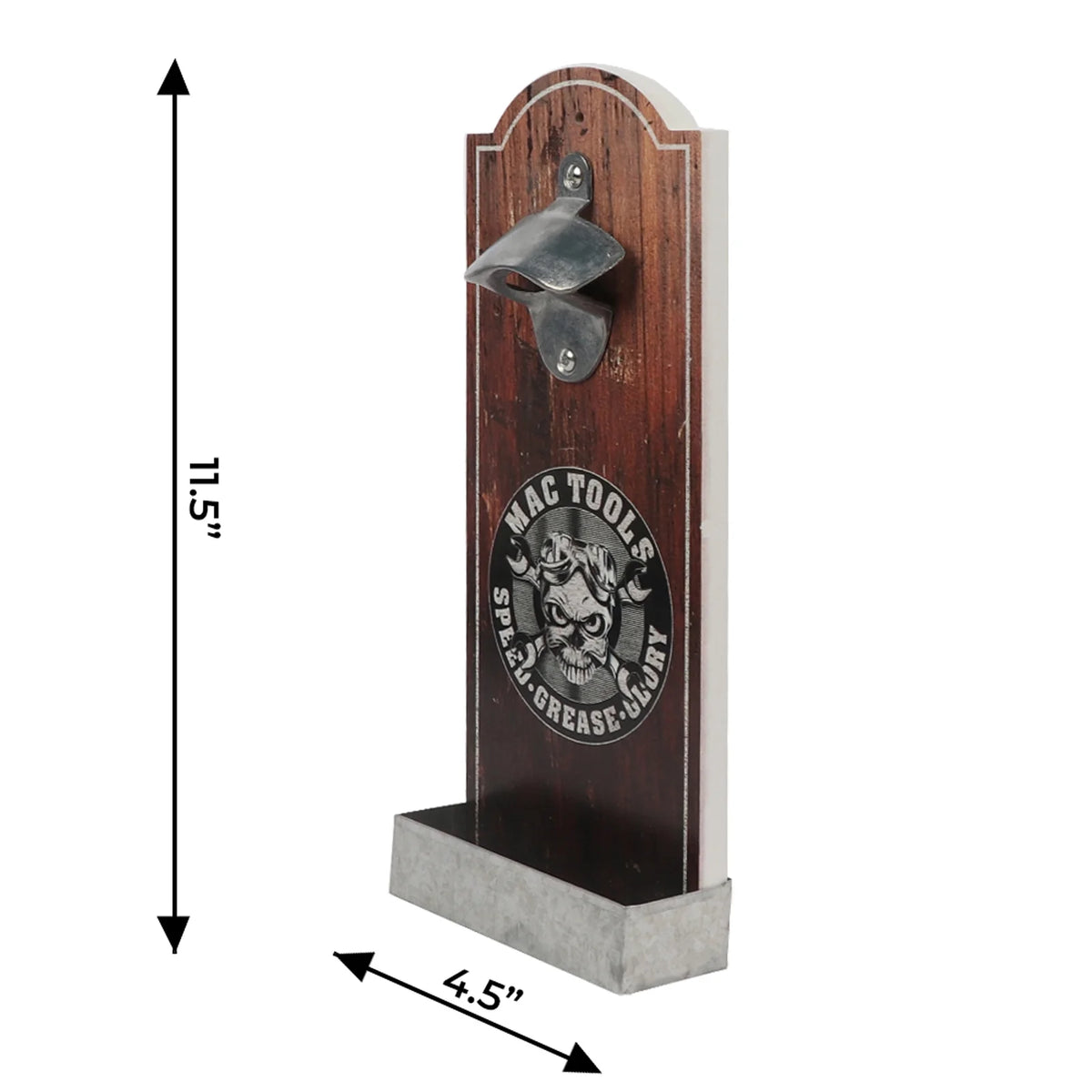 - CLASSIC BOTTLE OPENER: Brown Vintage Rustic wood, cast iron opener and metal cap catcher, this opener will make your life easier, while entertaining guest. <br>