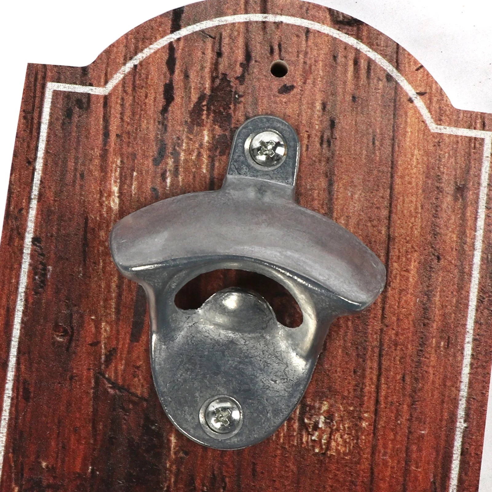 BIGTREE Wall Bottle Opener Easy Mount Brown Vintage Wood Panel Cast Iron Metal Cap Opener