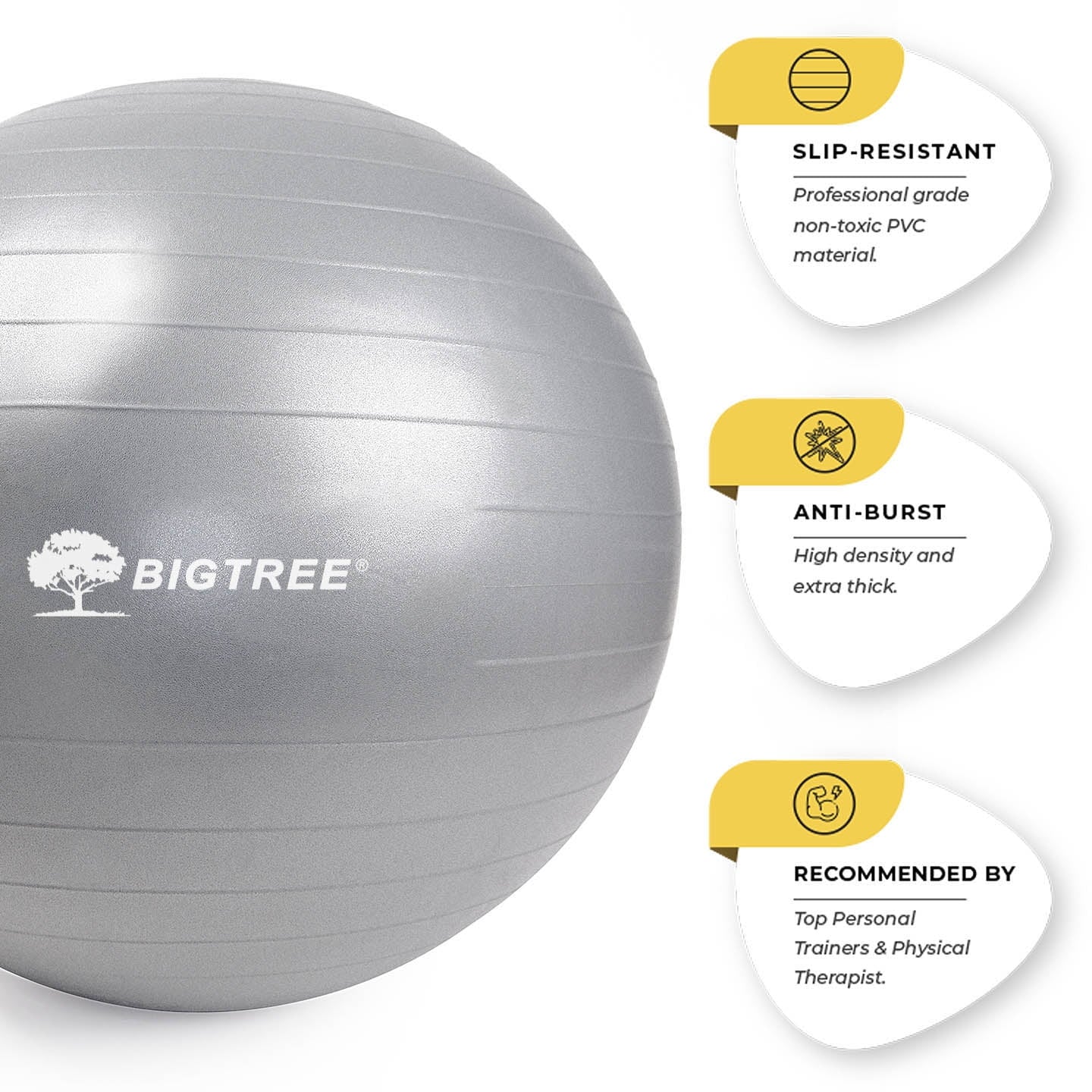BIGTREE Yoga Ball Exercise Fitness Core Stability Balance Strength Anti-Burst Heavy Duty GRAY Prenatal Birthing Yogaball Office Home Gym, 29.5" (75CM)