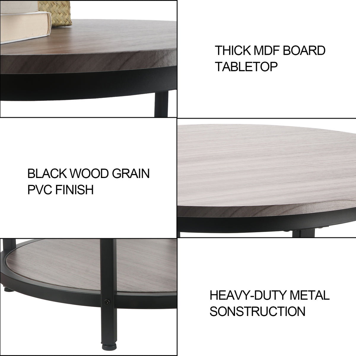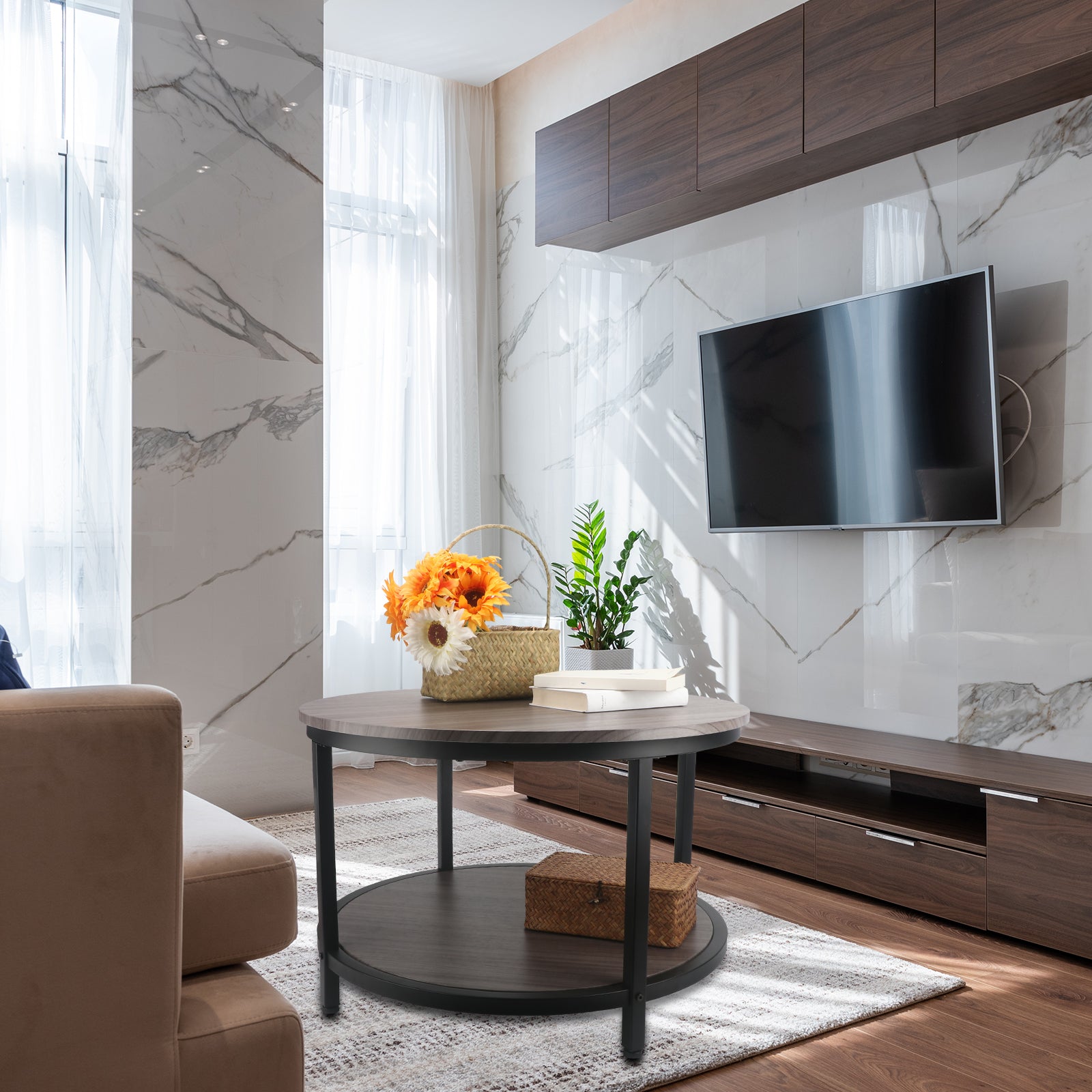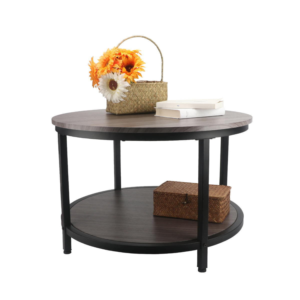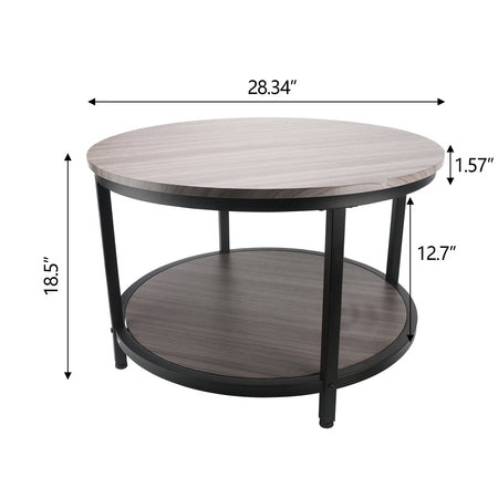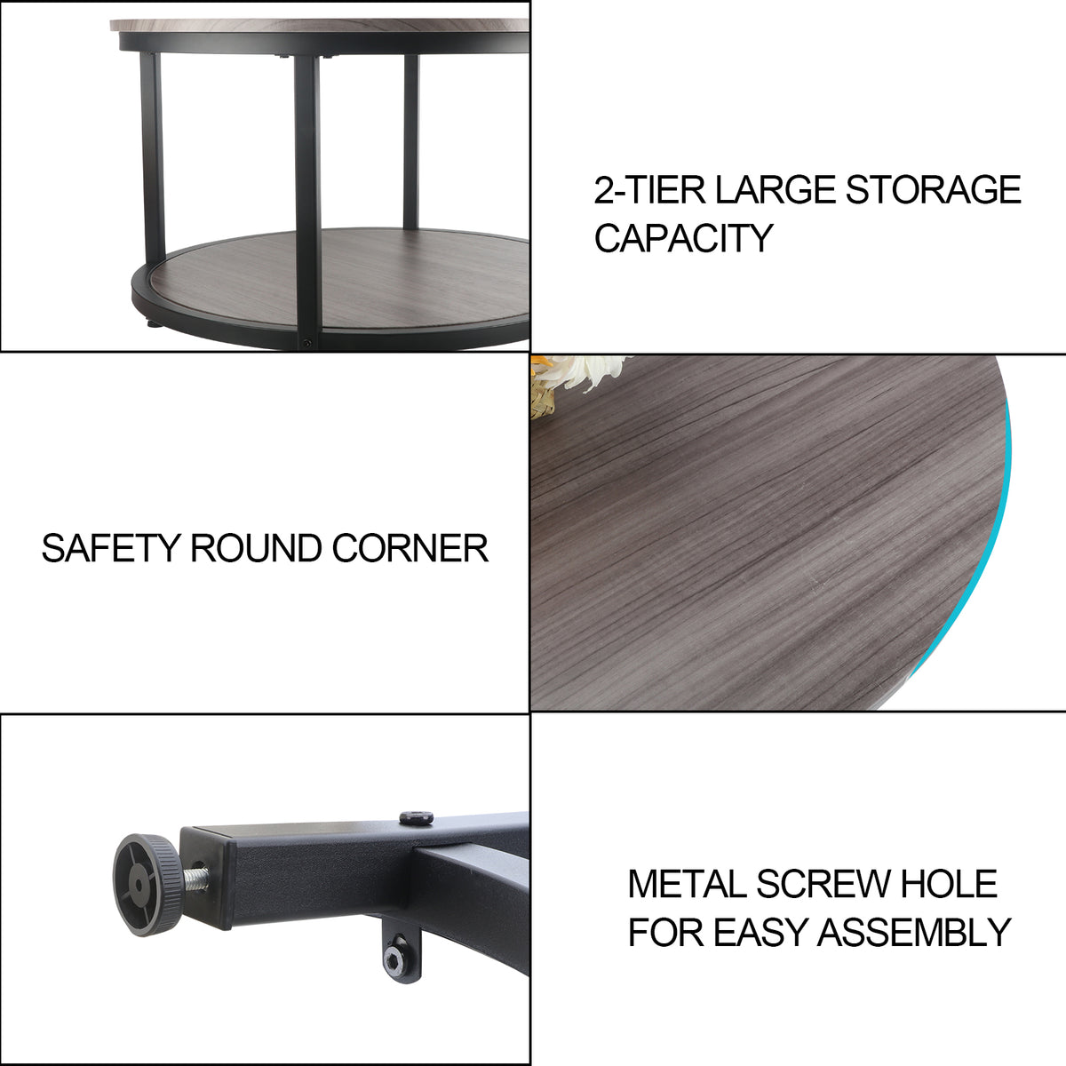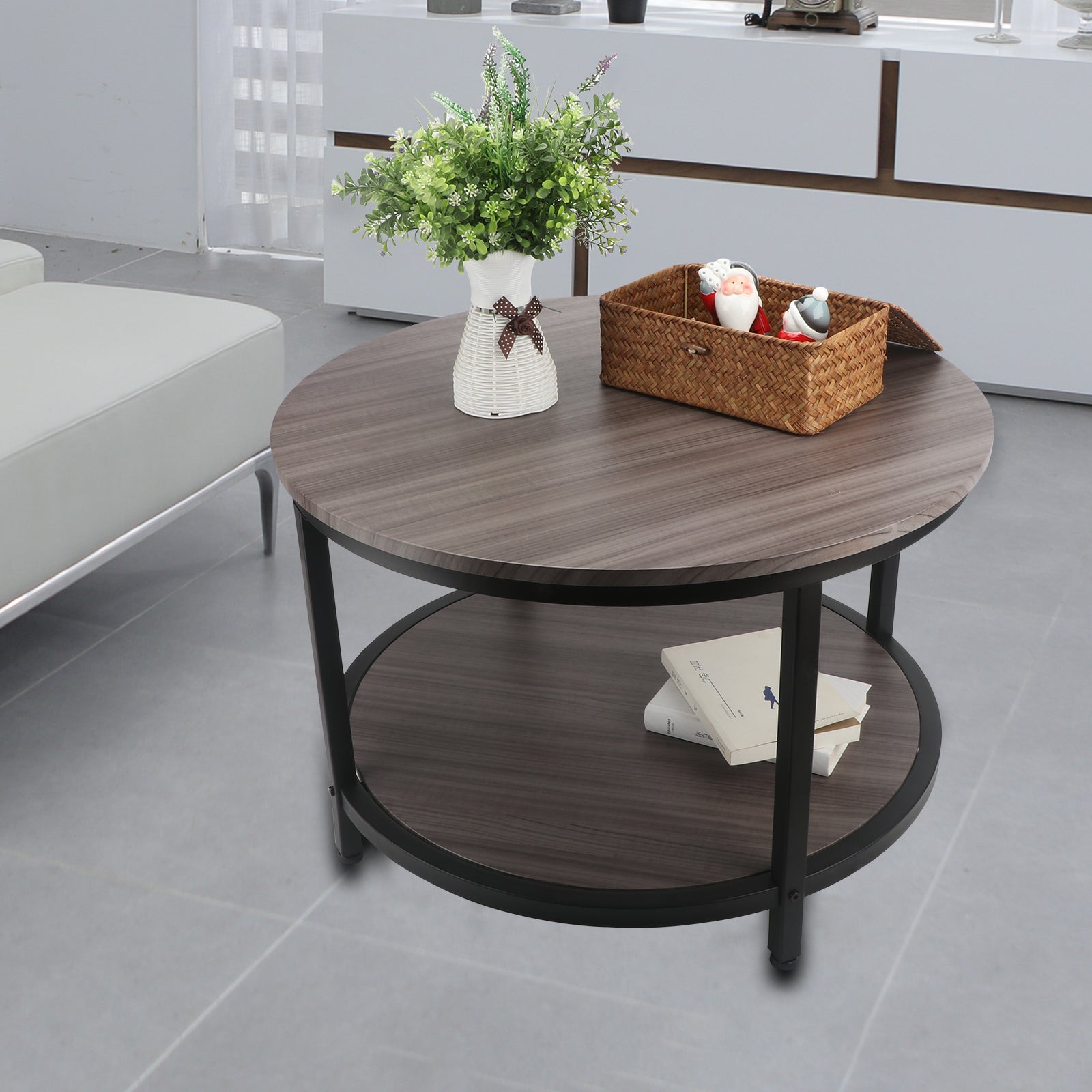 Round Coffee Table with Storage - Wood Grain Top & Metal Frame (Easy Assembly)