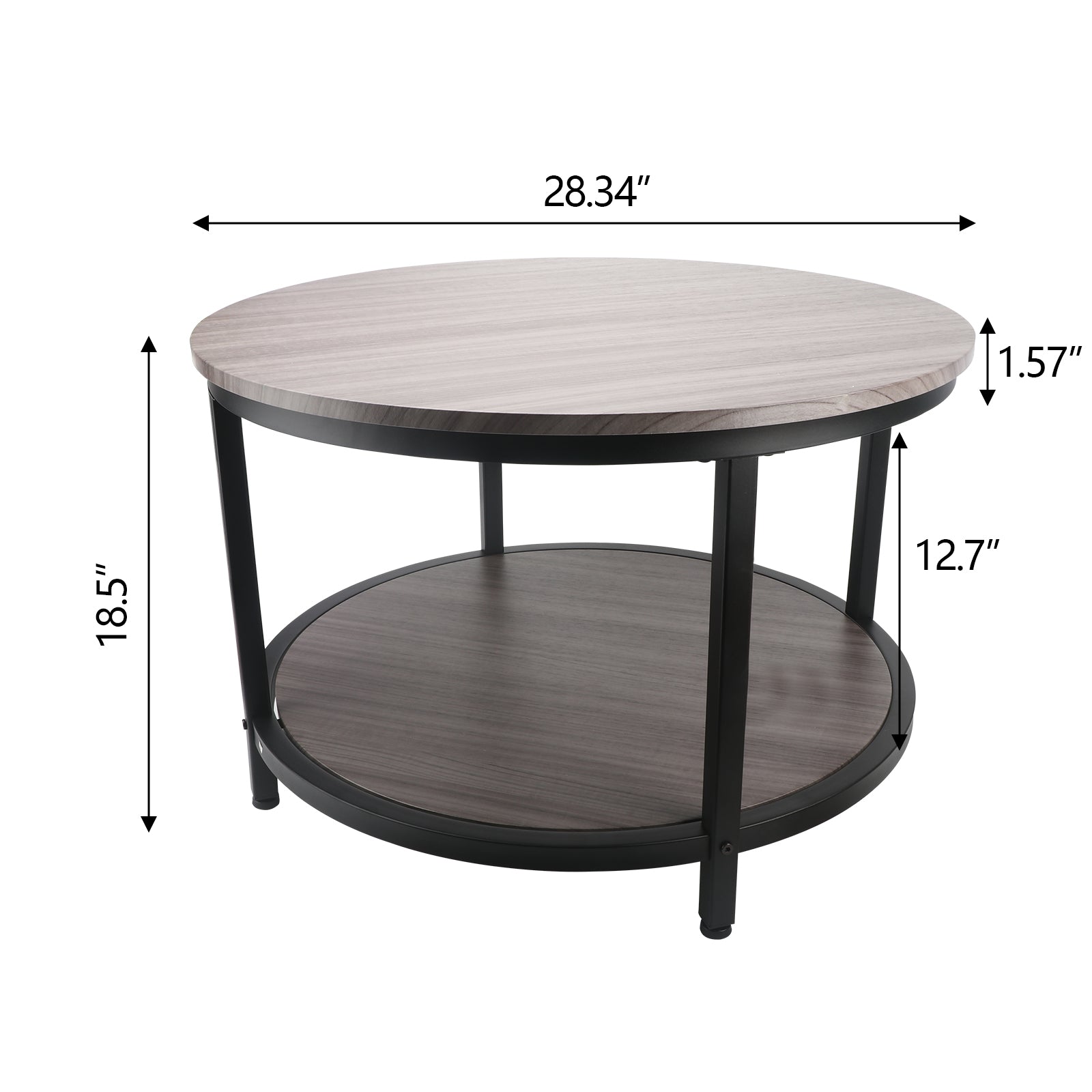 The round coffee table has a spacious surface for everyday use, a low open shelf to accommodate your different types of items, and plenty of space to keep your home and rooms neat and clean. With overall dimensions of 28.34"(W) x 18.5"(H), it is ideal for small spaces.