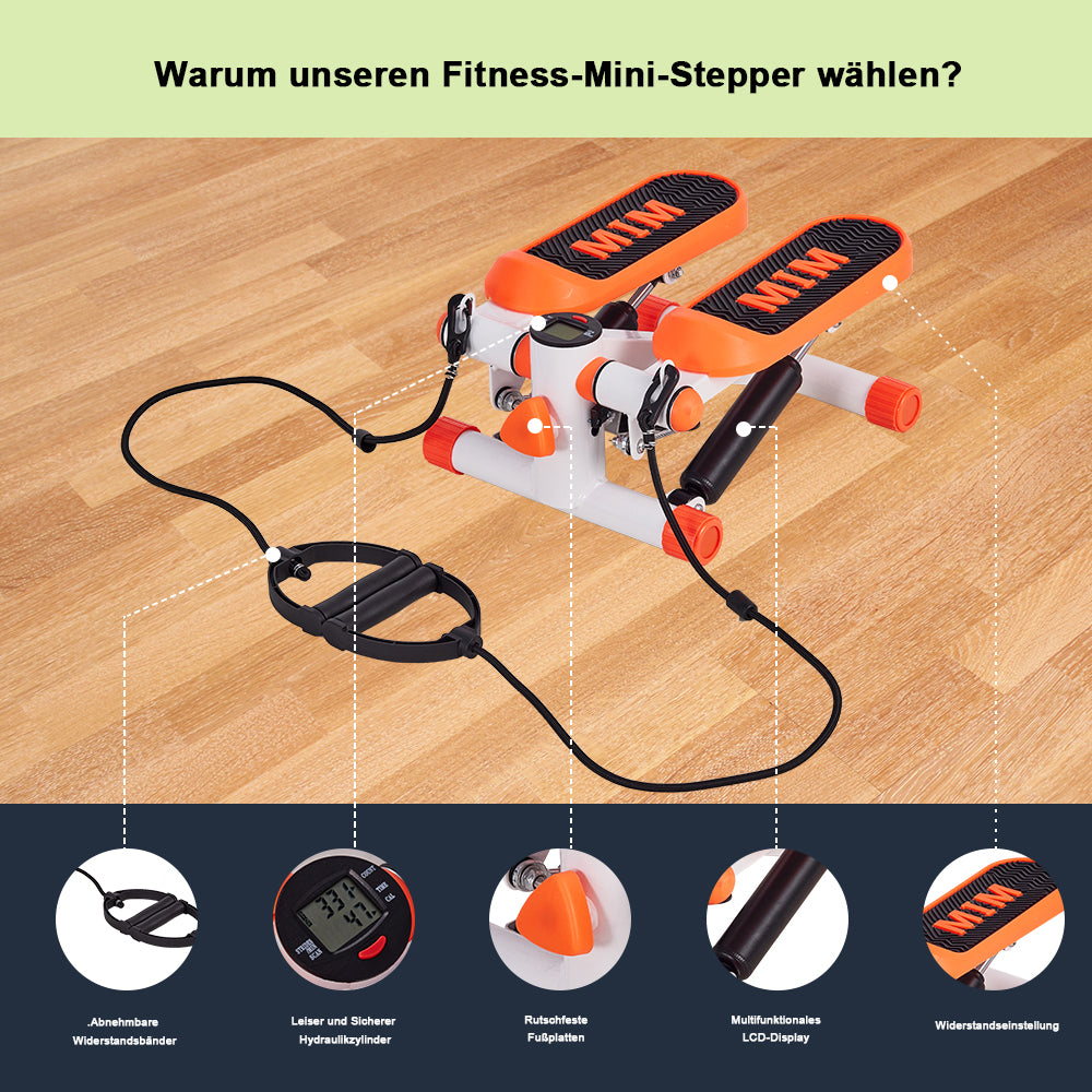 Mini Stepper Exercise Machine - Adjustable Resistance Hydraulic Stair Climber with LCD Monitor - Portable Cardio Equipment for Home/Office