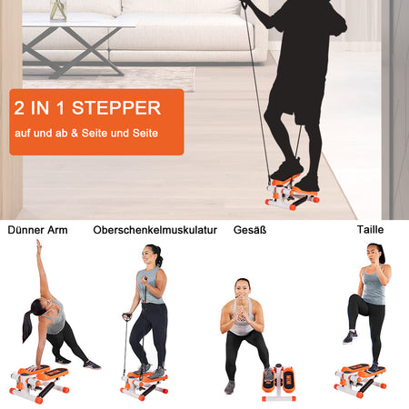 Get healthy in the comfort of mini stepper with resistance bands. Offering a full cardio workout and strengthening your muscles, this stepper exercise machine can help you get a shapely and toned body as well as full body workout. Work out anywhere at any time! This aerobic stepper is easily assembled, simply unbox and attach the included resistance bands to begin your fitness journey!