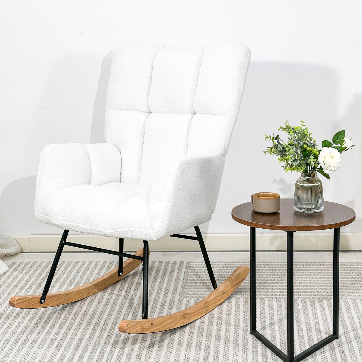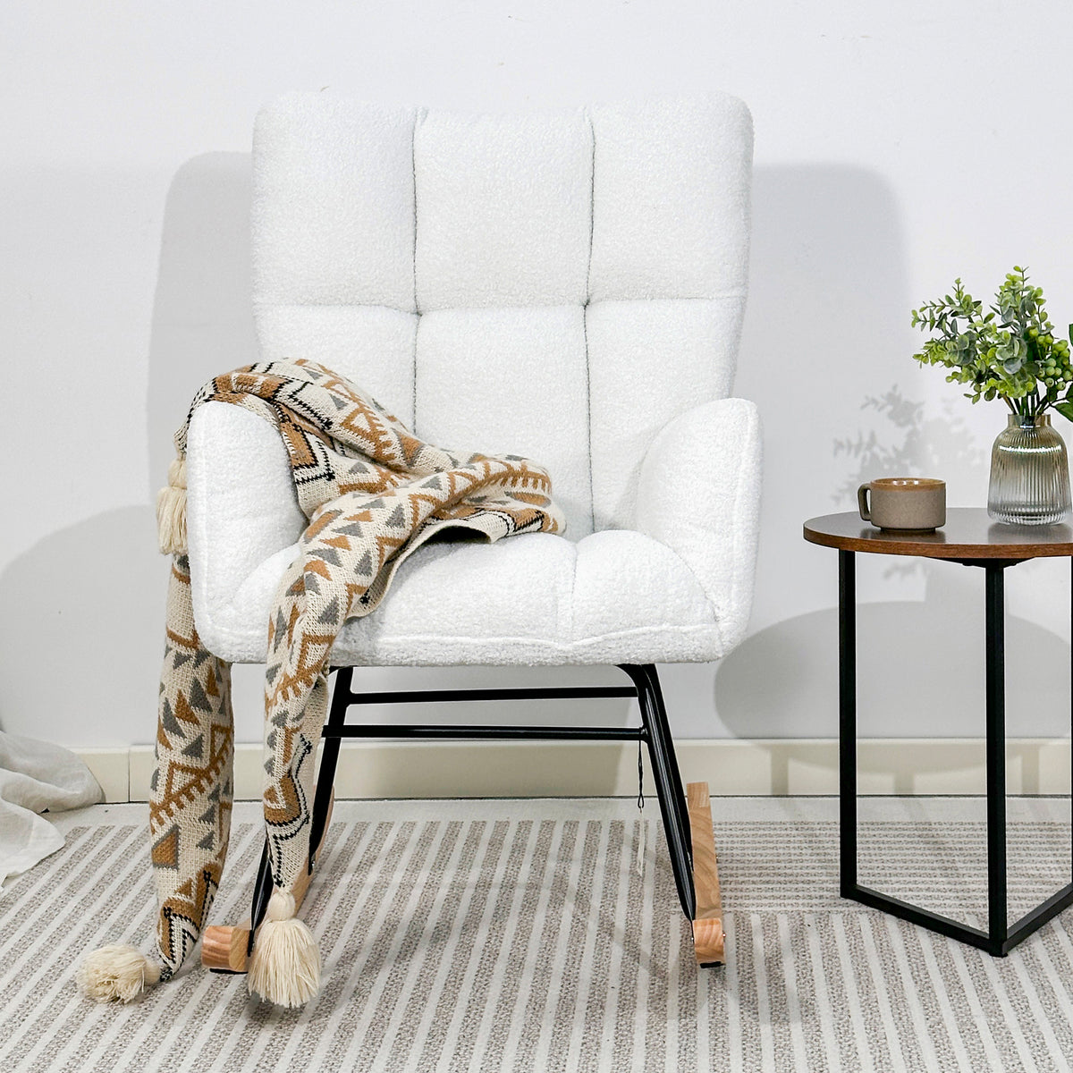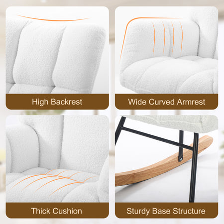 - 【Super Comfortable】This modern rocking chair is covered with breathable and soft teddy velvet fabric and filled with a high-density soft sponge to create the ultimate seating comfort. The seat with roomy depth and width is firm and well-cushioned, which allows the barrel chair to provide you with ample seating space while optimizing comfort.