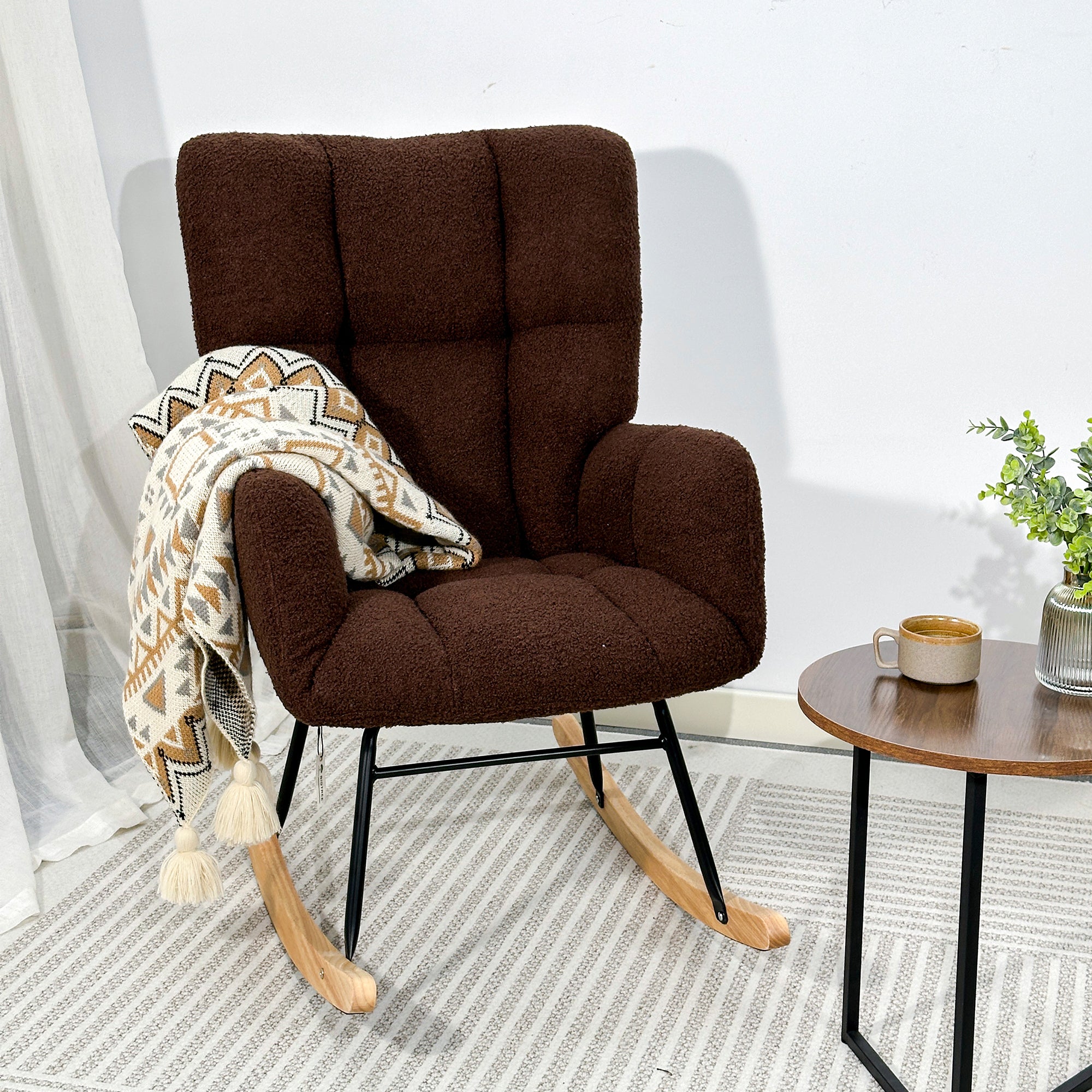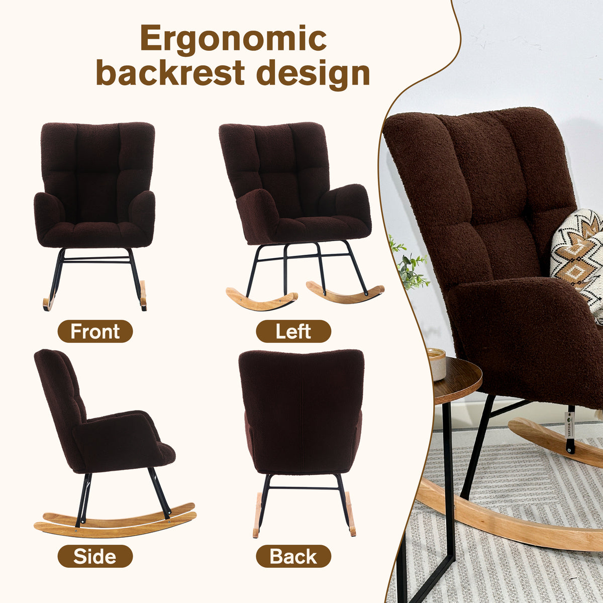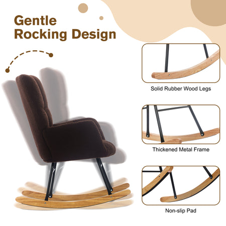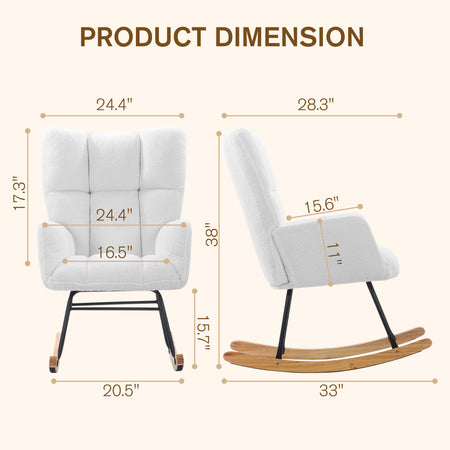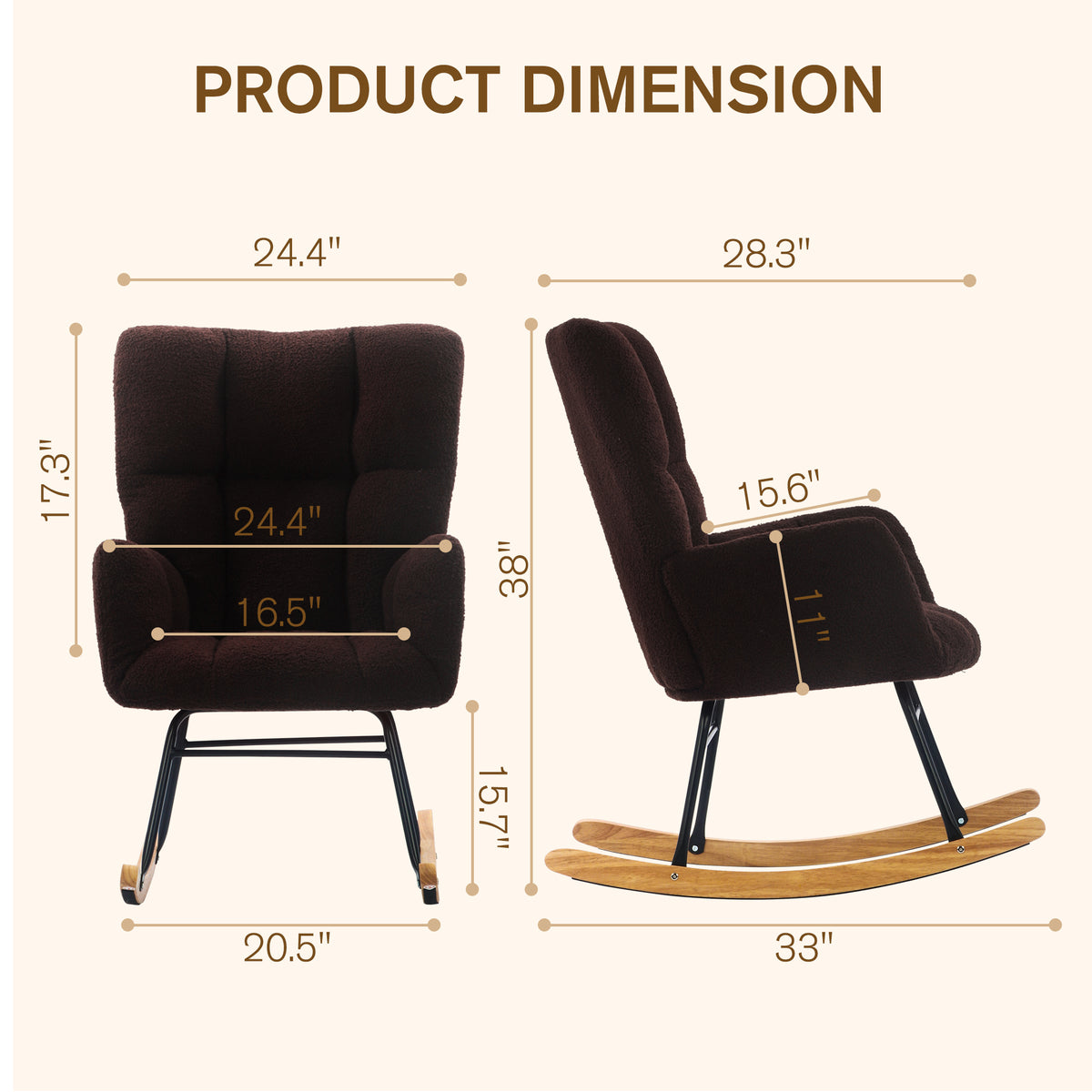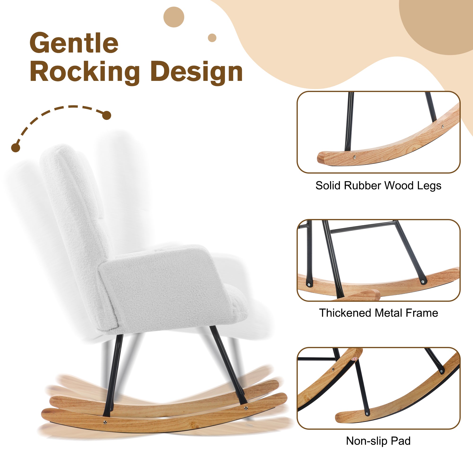 - 【High-quality】The solid wood bottom and metal frame provide stable support for the rocking chair nursery recliner. With the safe bottom tilt design, both adults and children can enjoy the fun and leisure time brought by the rocking chair indoor. It is suitable for the living room, bedroom, nursery, porch, office.