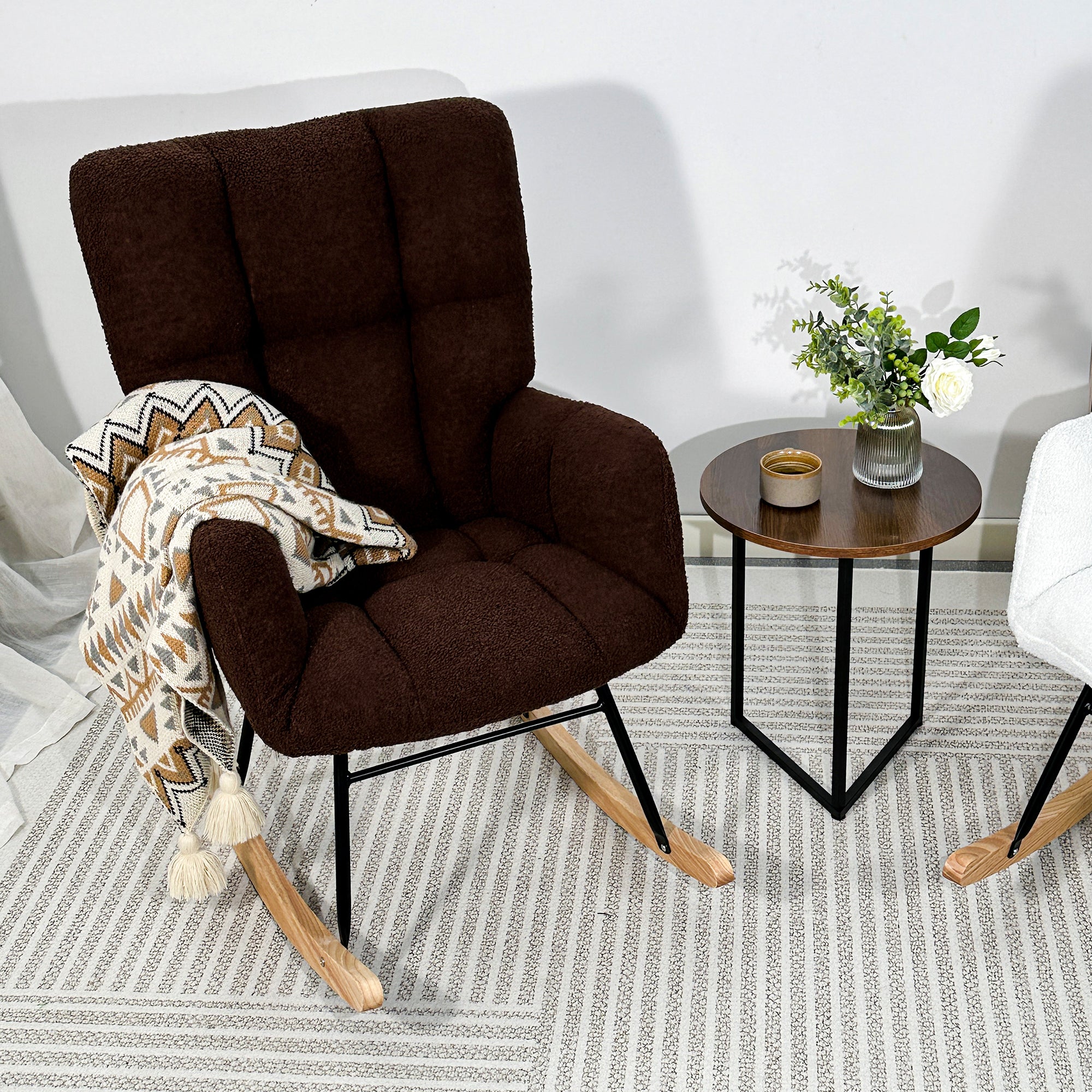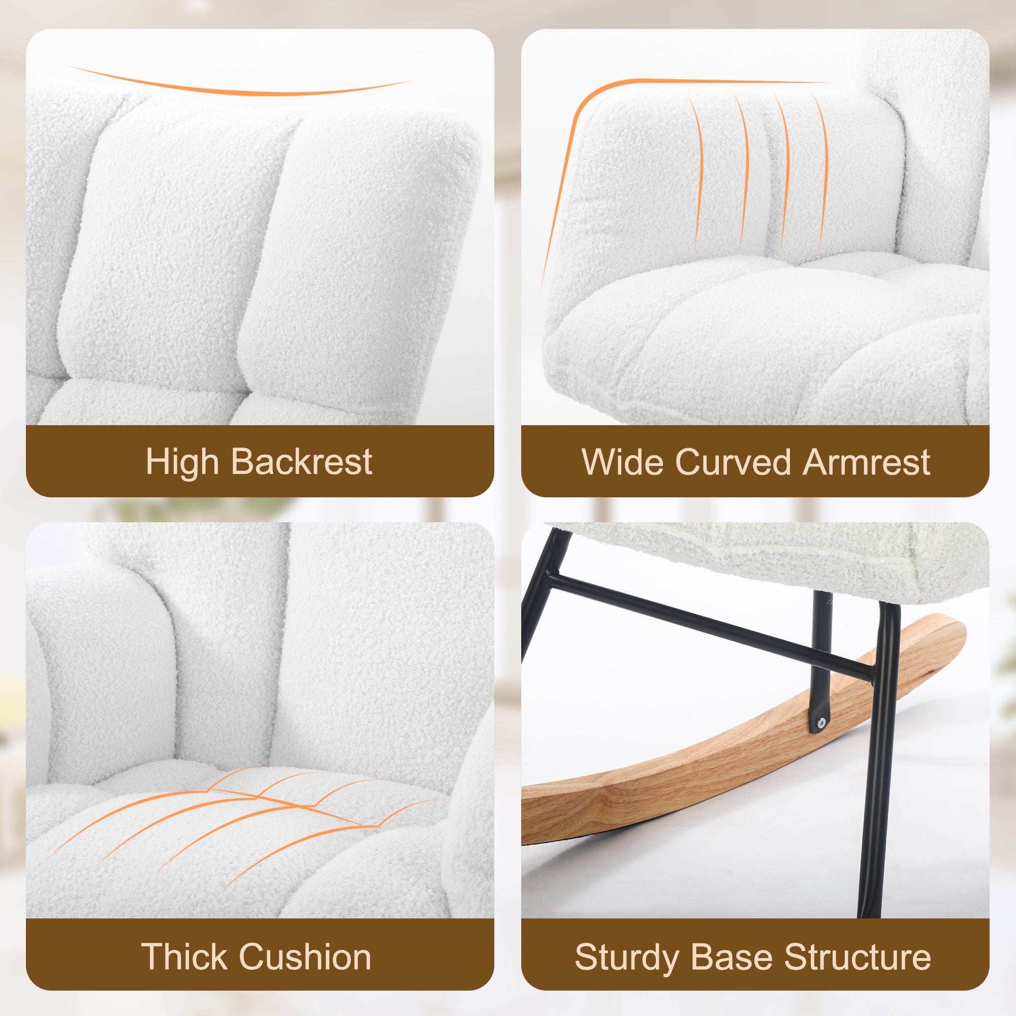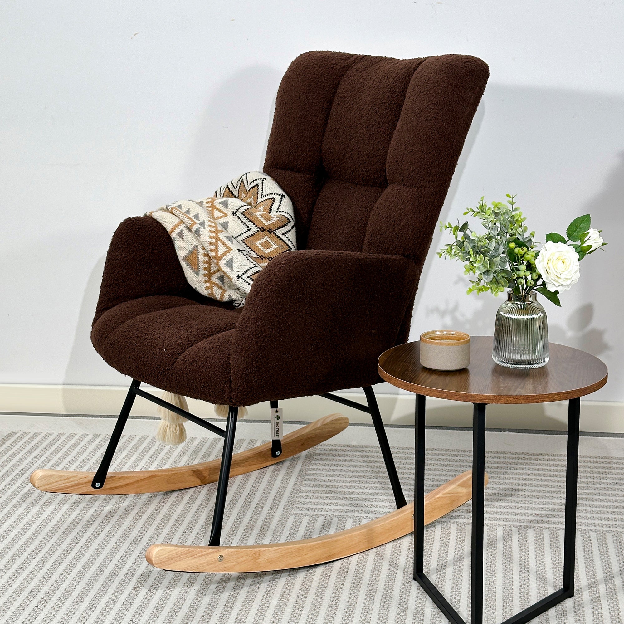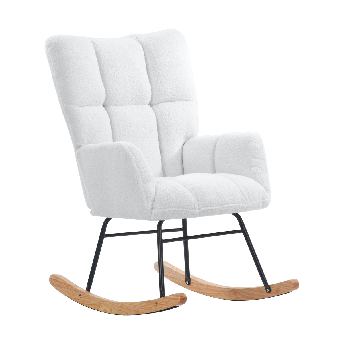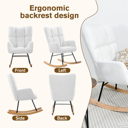 - 【High-quality】The solid wood bottom and metal frame provide stable support for the rocking chair nursery recliner. With the safe bottom tilt design, both adults and children can enjoy the fun and leisure time brought by the rocking chair indoor. It is suitable for the living room, bedroom, nursery, porch, office.