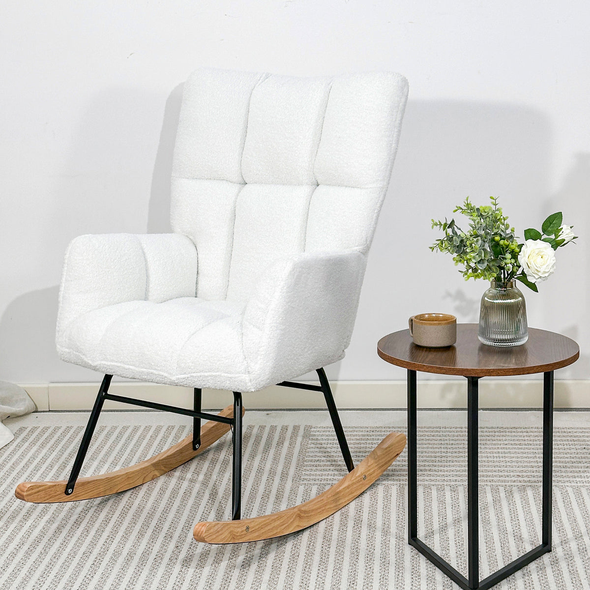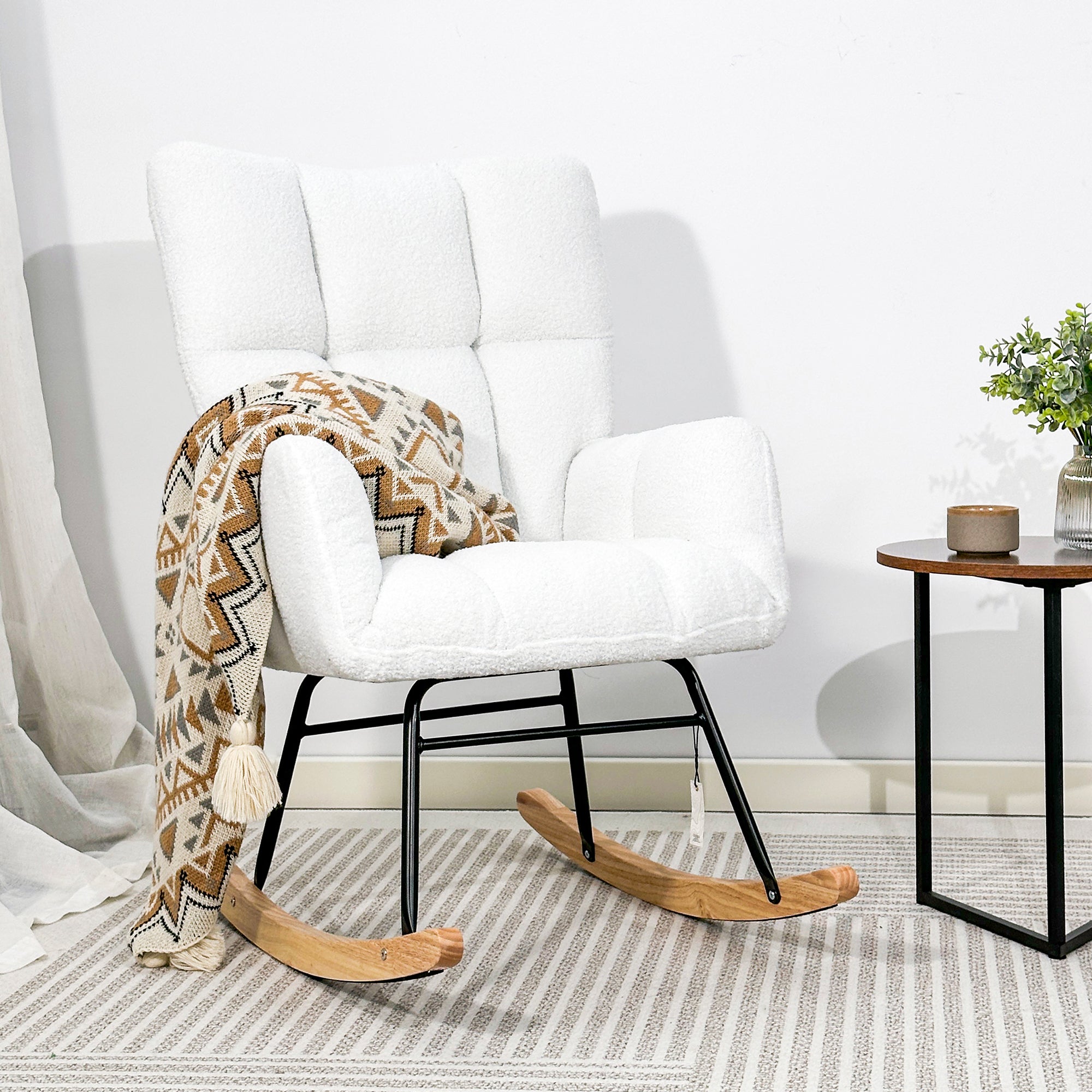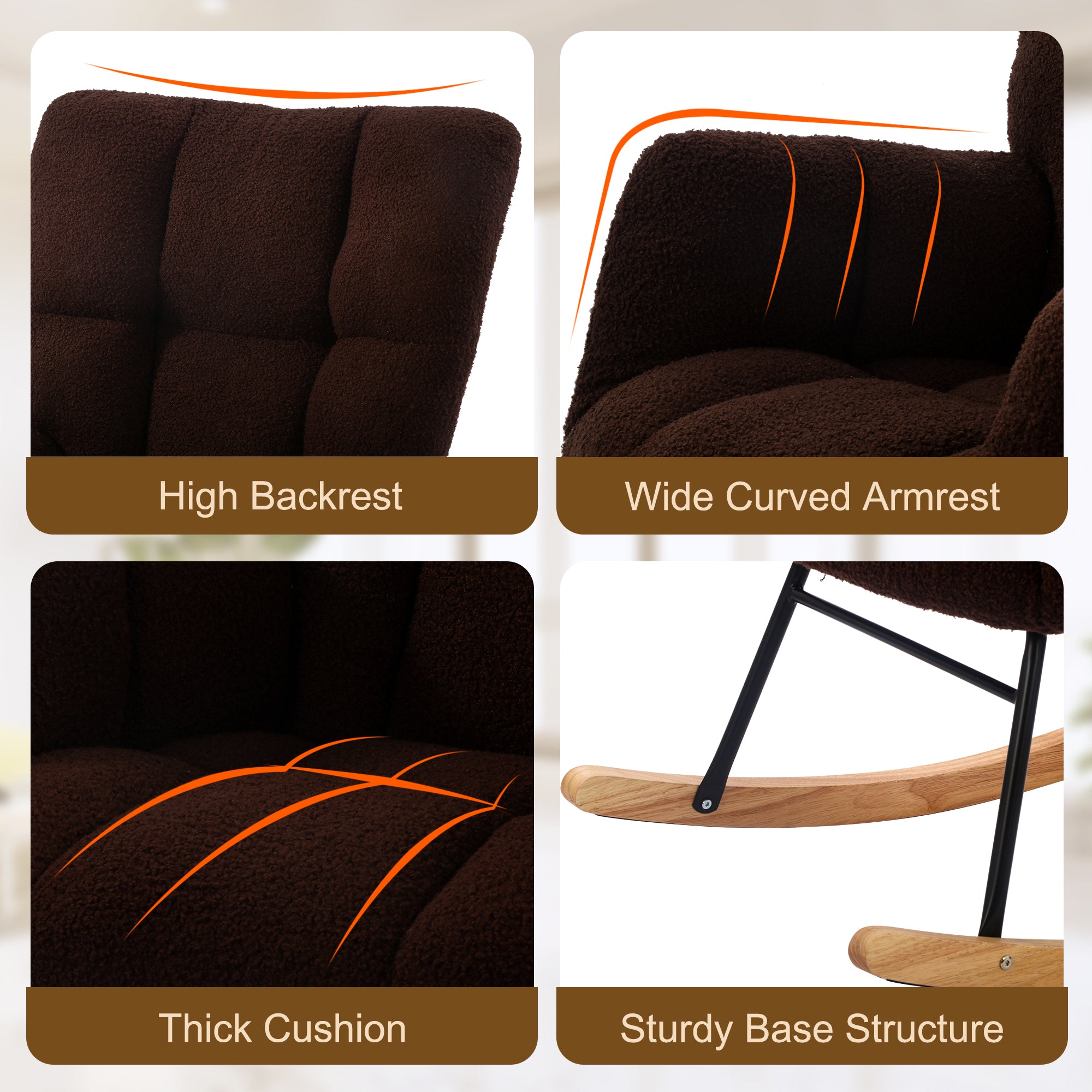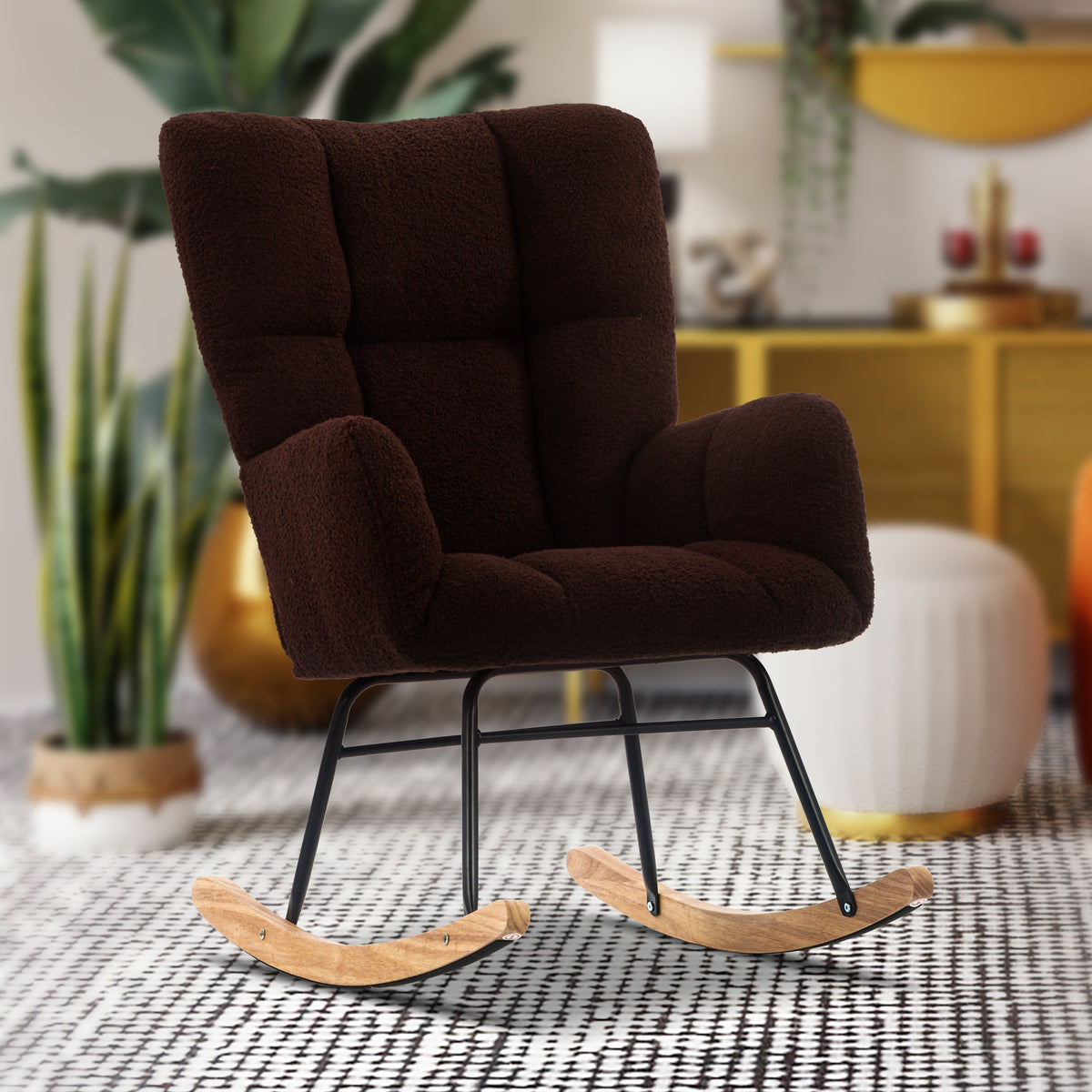 - 【High-quality】The solid wood bottom and metal frame provide stable support for the rocking chair nursery recliner. With the safe bottom tilt design, both adults and children can enjoy the fun and leisure time brought by the rocking chair indoor. It is suitable for the living room, bedroom, nursery, porch, office.