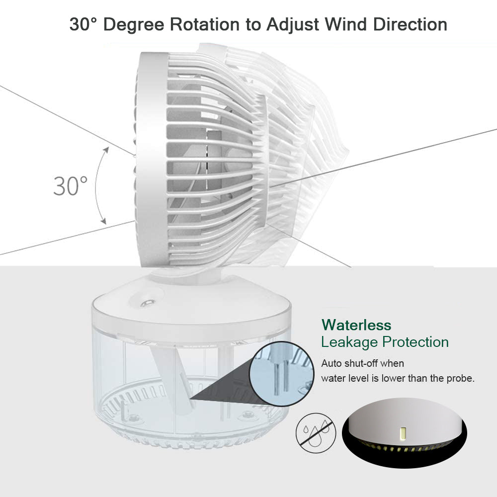 - 【5 Speed Wind Modes】There are five modes of small desktop fans, and you can adjust the wind speed according to your requirements. The humidifier fan is designed with a 350 ml water tanks, so there is no need to add water frequently. At the same time, the five blades of the fan simulate the natural wind, which makes the wind more concentrated and gives you an irresistible cool feeling.