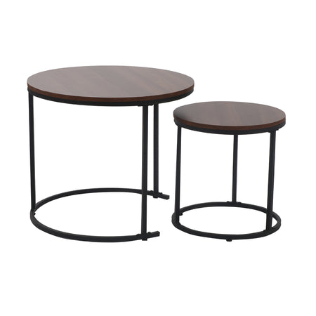 Modern Nesting Coffee Table Set - 2-Piece Round Wood Look Tables with Metal Frame
