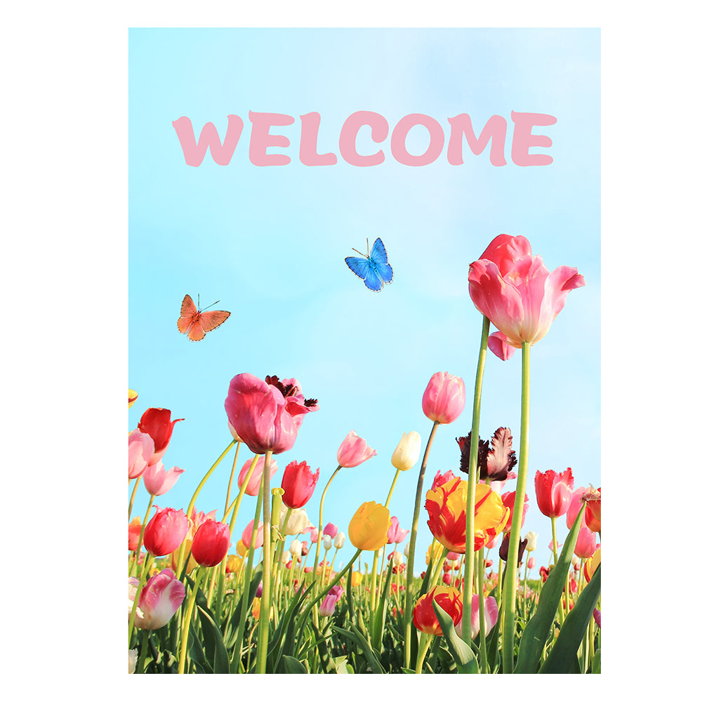 SM Garden Flag - 'WELCOME' Tulip & Butterfly Spring Design, Durable Polyester Flag for Outdoor Yard Decor