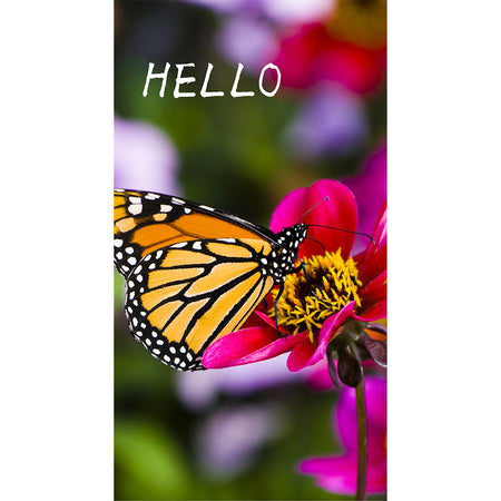 SM Garden Flag with Pole - Hello Monarch Butterfly & Flower Design, Durable Polyester Flag Set for Outdoor Garden, Yard Decor