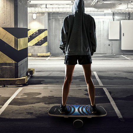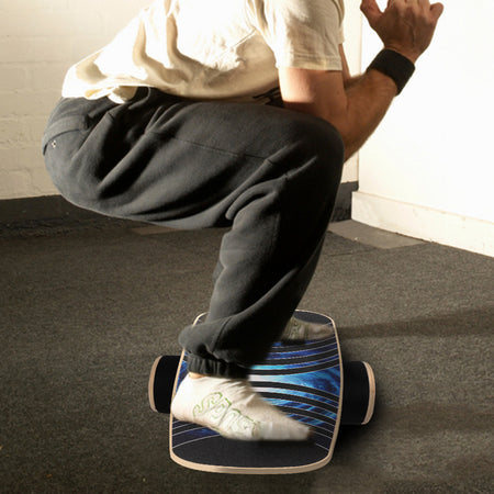 Balance Board Trainer is a challenging way for beginners to learn how to skate or snow board Just place the roller balancing board underneath the board and balance your body on the board while rocking back and forth. The constant movement builds up the core muscle group.